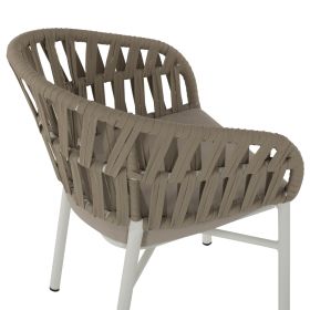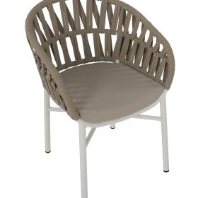 Η πολυθρόνα HM5857.02 είναι όμορφη! Μοντέρνα, άνετη και σταθερή! Η διχρωμία του ΛΕΥΚΟΥ σκελετού με την ΜΠΕΖ επένδυση από σχοινί σε όλη την πλάτη είναι μοναδική. Η πλάτη με τα μπράτσα αποτελούν ένα ενιαίο ημικυκλικό κομμάτι με μια δοκό που ακολουθεί το σχέδιο και είναι πλεγμένη με σχοινί και αγκαλιάζει το σώμα, ενώ η κλίση στα μπράτσα είναι χαρακτηριστική. Το μαξιλάρι του καθίσματος είναι και αυτό σε μπεζ χρώμα και είναι άνετο. Η πολυθρόνα αυτή θα αναβαθμίσει αισθητικά τον χώρο που θα την τοποθετήσετε και θα τραβήξει τα βλέμματα χάρη στα υλικά κατασκευής της. Επίσης, το γεγονός ότι είναι στοιβαζόμενη την κάνει ιδιαιτέρως πρακτική αφού μπορείτε να την αποθηκεύσετε στον μικρότερο δυνατό χώρο.