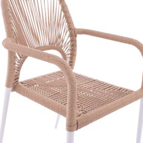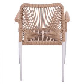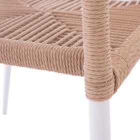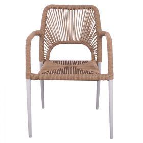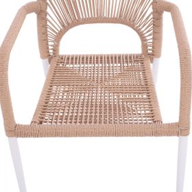 Μοντέρνα πολυθρόνα, κατασκευασμένη από σκελετό αλουμινίου σε λευκή απόχρωση, επενδυμένη με πλεκτό ενισχυμένο PE σχοινί στο κάθισμα και στην πλάτη σε μπεζ απόχρωση.