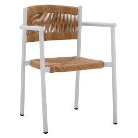 Μοντέρνα πολυθρόνα, κατασκευασμένη από σκελετό αλουμινίου σε λευκή απόχρωση, επενδυμένημε πλεκτό ενισχυμένο PE σχοινί στο κάθισμα και στην πλάτη σε μπεζ απόχρωση.
