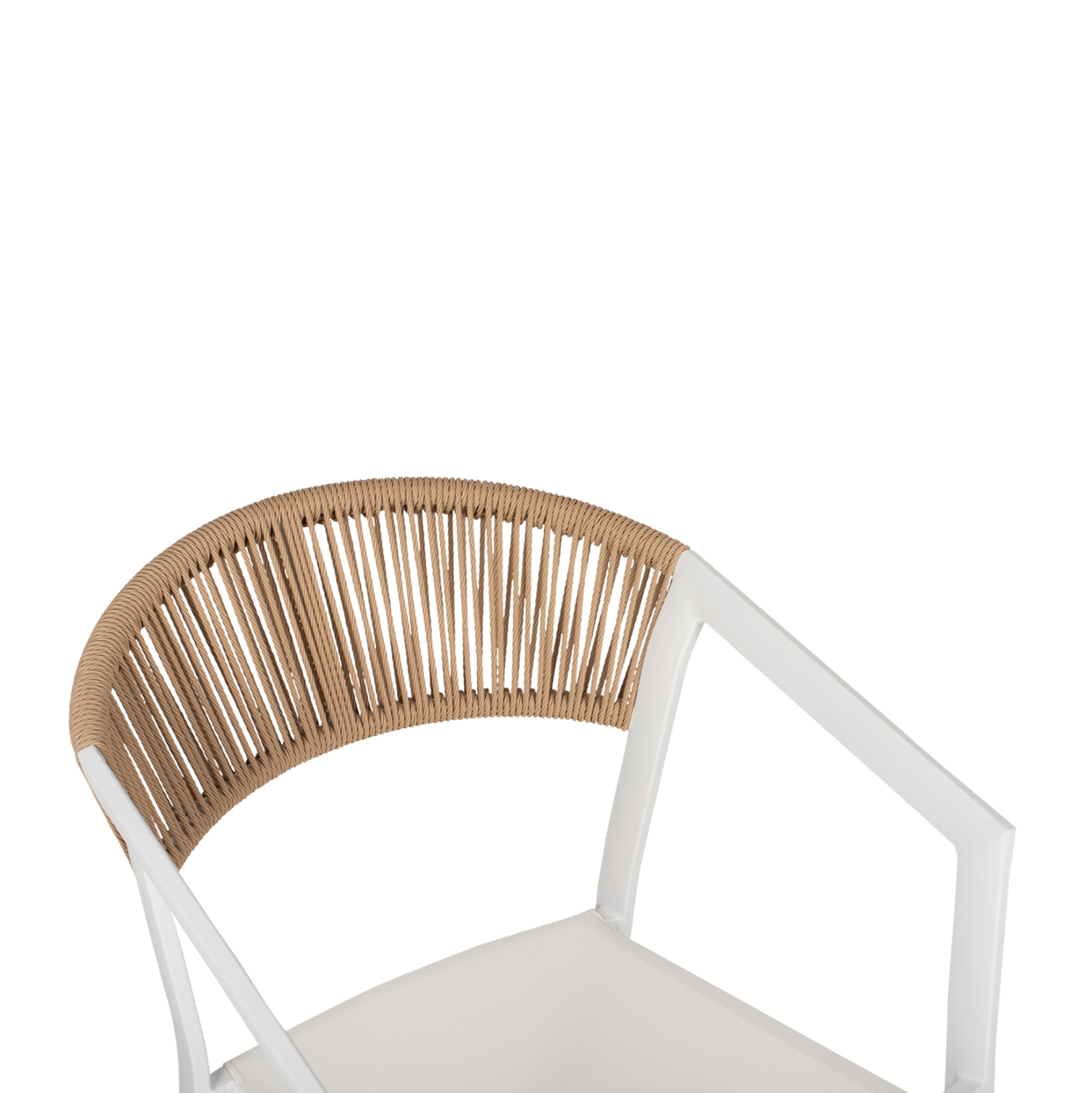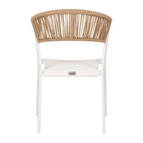 Η πλάτη της πολυθρόνας είναι επενδυμένη με πολυεστερικό RATTAN. Στα περισσότερα έπιπλα κήπου και γενικά σε έπιπλα για εξωτερικούς χώρους χρησιμοποιείται συνθετικό υλικό από PVC, δηλαδή τεχνητές ίνες υψηλής ποιότητας. Αυτό δίνει στην κατασκευή εξαιρετική αντοχή και ανθεκτικότητα σε ακραίες συνθήκες ζέστης ή κρύου.