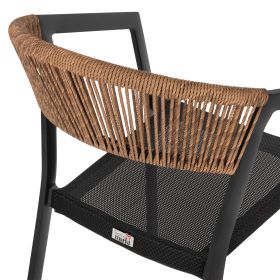 Η πλάτη της πολυθρόνας είναι επενδυμένη με πολυεστερικό RATTAN. Στα περισσότερα έπιπλα για εξωτερικούς χώρους χρησιμοποιείται συνθετικό υλικό από PVC, δηλαδή τεχνητές ίνες υψηλής ποιότητας. Αυτό δίνει στην κατασκευή εξαιρετική αντοχή και ανθεκτικότητα σε ακραίες συνθήκες ζέστης ή κρύου.