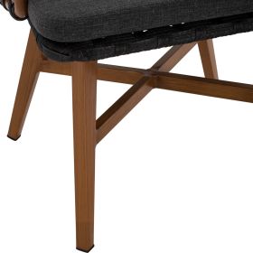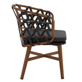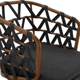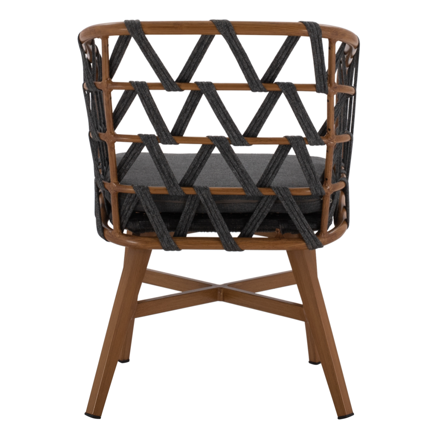 Μοντέρνα πολυθρόνα, κατασκευασμένη από σκελετό αλουμινίου σε καφέ απόχρωση, επενδυμένη με πλεκτό πλατύ OLEFIN strap στην πλάτη σε γκρι απόχρωση.