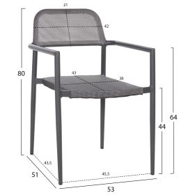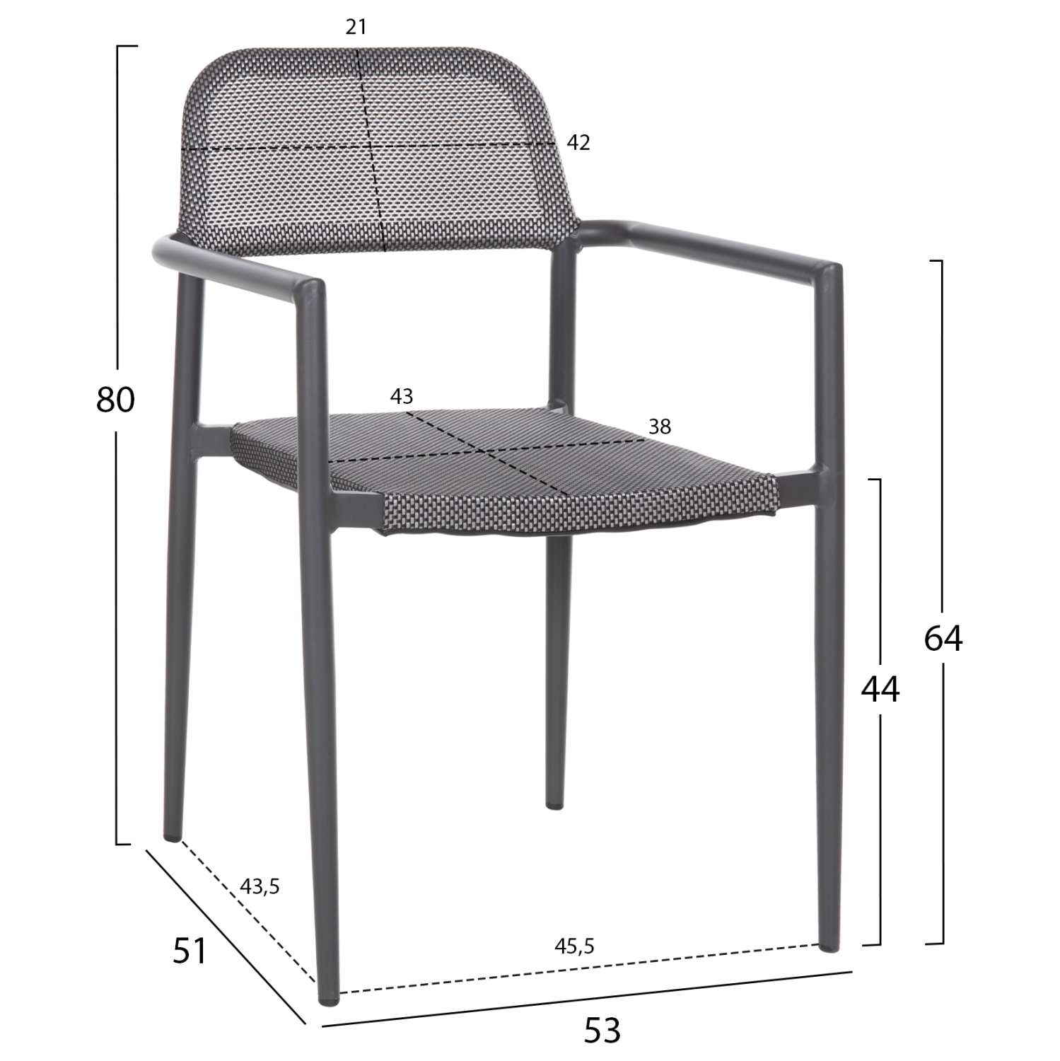 Το κάθισμα και η πλάτη είναι από textline (ή textilene) υψηλής ποιότητας 2x1. Αυτό είναι ένα παχύ, ισχυρό και ανθεκτικό πολυεστερικό ύφασμα. Σημαίνει ότι είναι κατασκευασμένο από πολυεστερικά νήματα με PVC.