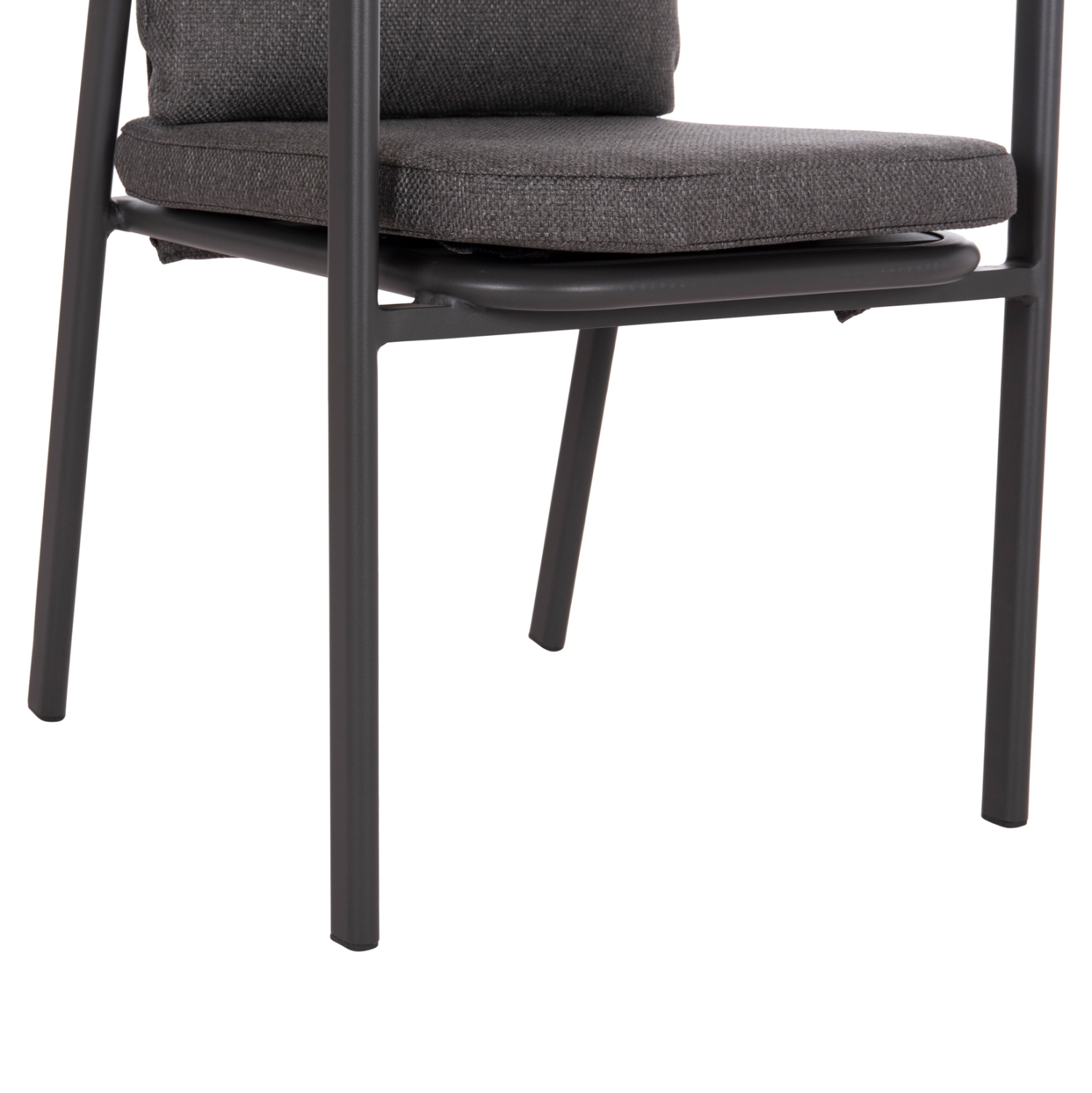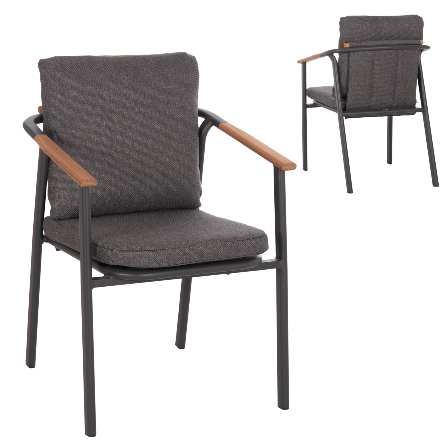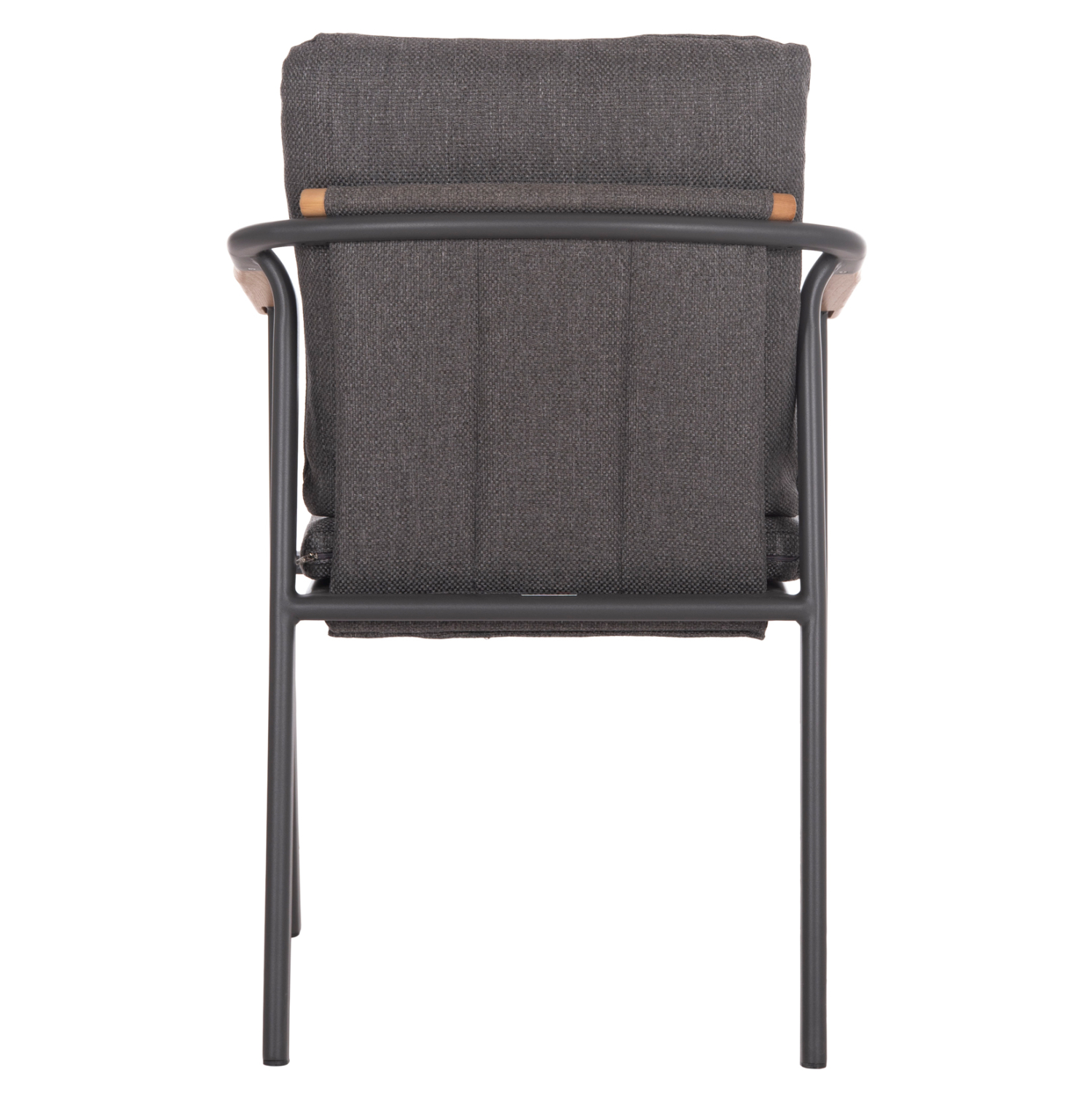 Η πολυθρόνα τραπεζαρίας αλουμινίου SENTI σε ΣΚΟΥΡΟ ΓΚΡΙ χρώμα διαθέτει μαξιλάρια πλάτης και καθίσματος επενδυμένα με ύφασμα OLEFIN, στο ίδιο χρώμα. Η πινελιά με το ξύλο teak στα μπράτσα δίνει μια όμορφη όψη στην πολυθρόνα. Συνδυάστε την με ένα όμορφο τραπέζι και δημιουργήστε μια τραπεζαρία εξωτερικού χώρου που θα κερδίσει τις εντυπώσεις.