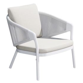 Πολυθρόνα Lounge Εξωτερικού Χώρου ΧΑΝΤΙΟΝ από Αλουμίνιο με Σχοινί & Μαξιλάρια--ΛΕΥΚΟ