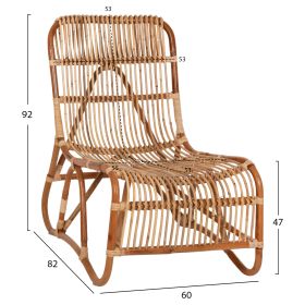 Ολόκληρη η πολυθρόνα είναι κατασκευασμένη από φυσικό Rattan. Το Rattan είναι το καλύτερο και το πιο ευρέως χρησιμοποιούμενο φυσικό υλικό για την κατασκευή επίπλων. Το Rattan που καλλιεργείται στην Ν.Α. Ασία είναι το ποιοτικότερο και ανθεκτικότερο υλικό από παρόμοια που καλλιεργούνται σε άλλες περιοχές. Το Rattan είναι ένα φυσικά αναπτυσσόμενο είδος αμπέλου που είναι εγγενές σε τροπικές περιοχές της Αυστραλίας, της Ασίας και της Αφρικής. Με περισσότερα από 600 διαφορετικά είδη, το RATTAN μπορεί να διακριθεί ως ένα ισχυρό ινώδες φυτό που μοιάζει με το μπαμπού και χρησιμοποιείται για έπιπλα επειδή είναι ελαφρύ, ανθεκτικό, εύκαμπτο και ελκυστικό.