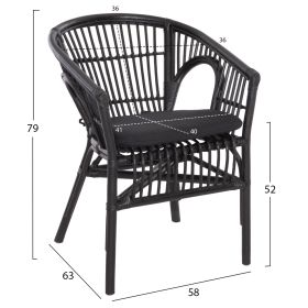 Η πολυθρόνα DAMPAR είναι κυρίως για εξωτερικούς χώρους, και ουσιαστικά δεν έχει ξεχωριστά μπράτσα αλλά ο σχεδιασμός της αγκαλιάζει το σώμα. Ο σκελετός της όπως και το κάθισμα, είναι από Rattan, ενώ τo μαξιλάρι στο κάθισμα είναι αναπαυτικό και δένεται με κορδόνια. Ολόκληρη η πολυθρόνα είναι σε ΜΑΥΡΟ χρώμα.