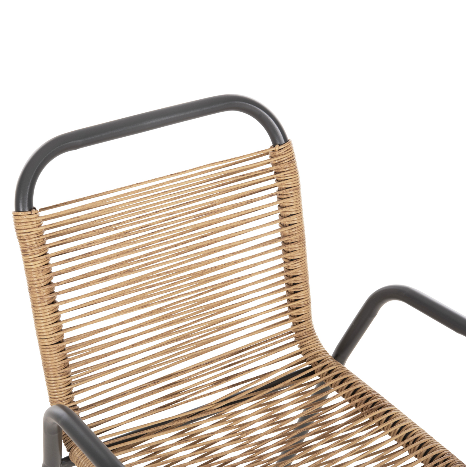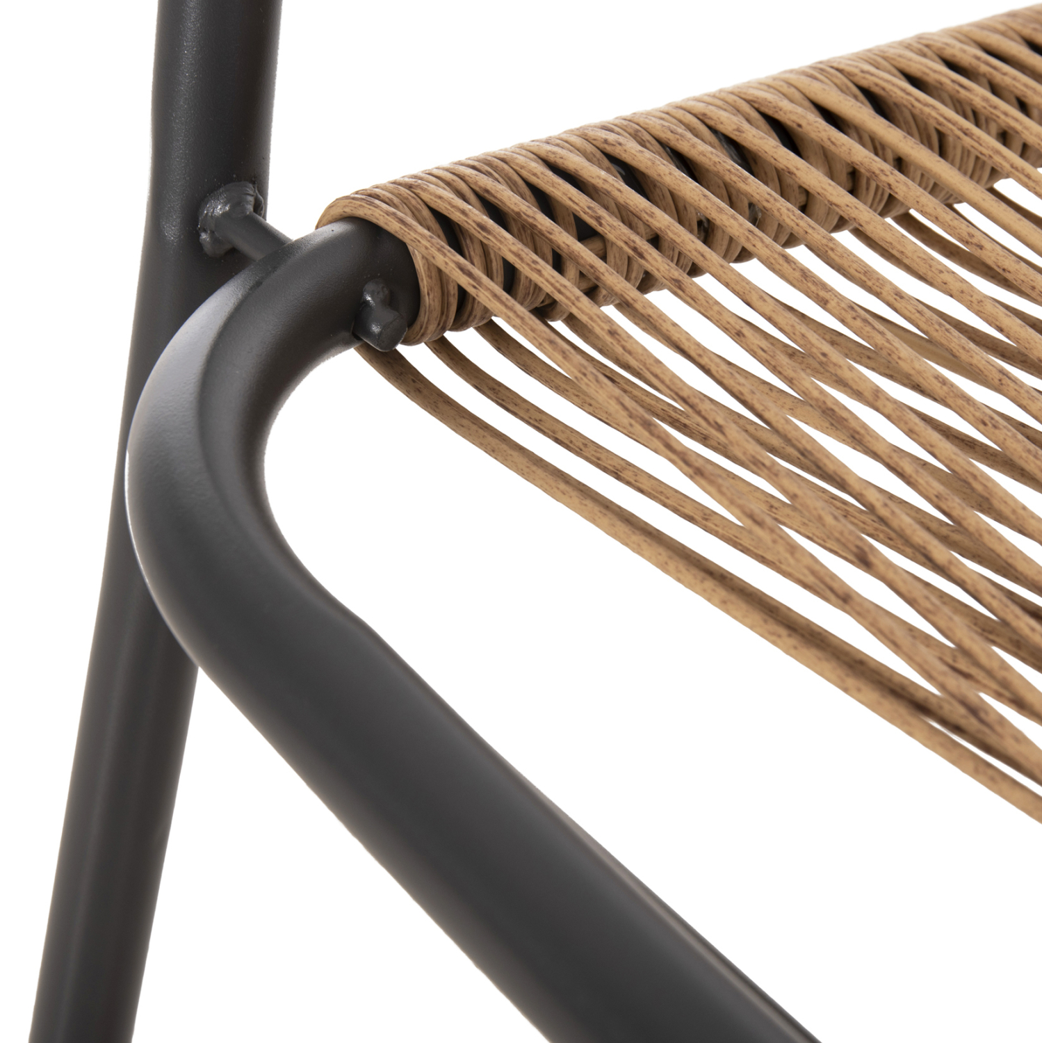 Η πλάτη και το κάθισμα αποτελούνται από εξαιρετικής ποιότητας συνθετικό Rattan. Το συνθετικό Rattan είναι συνθετικό υλικό από πολυεστέρα, δηλαδή τεχνητές ίνες υψηλής ποιότητας. Αυτό δίνει εξαιρετική αντοχή και ανθεκτικότητα σε ακραίες συνθήκες ζέστης ή κρύου.