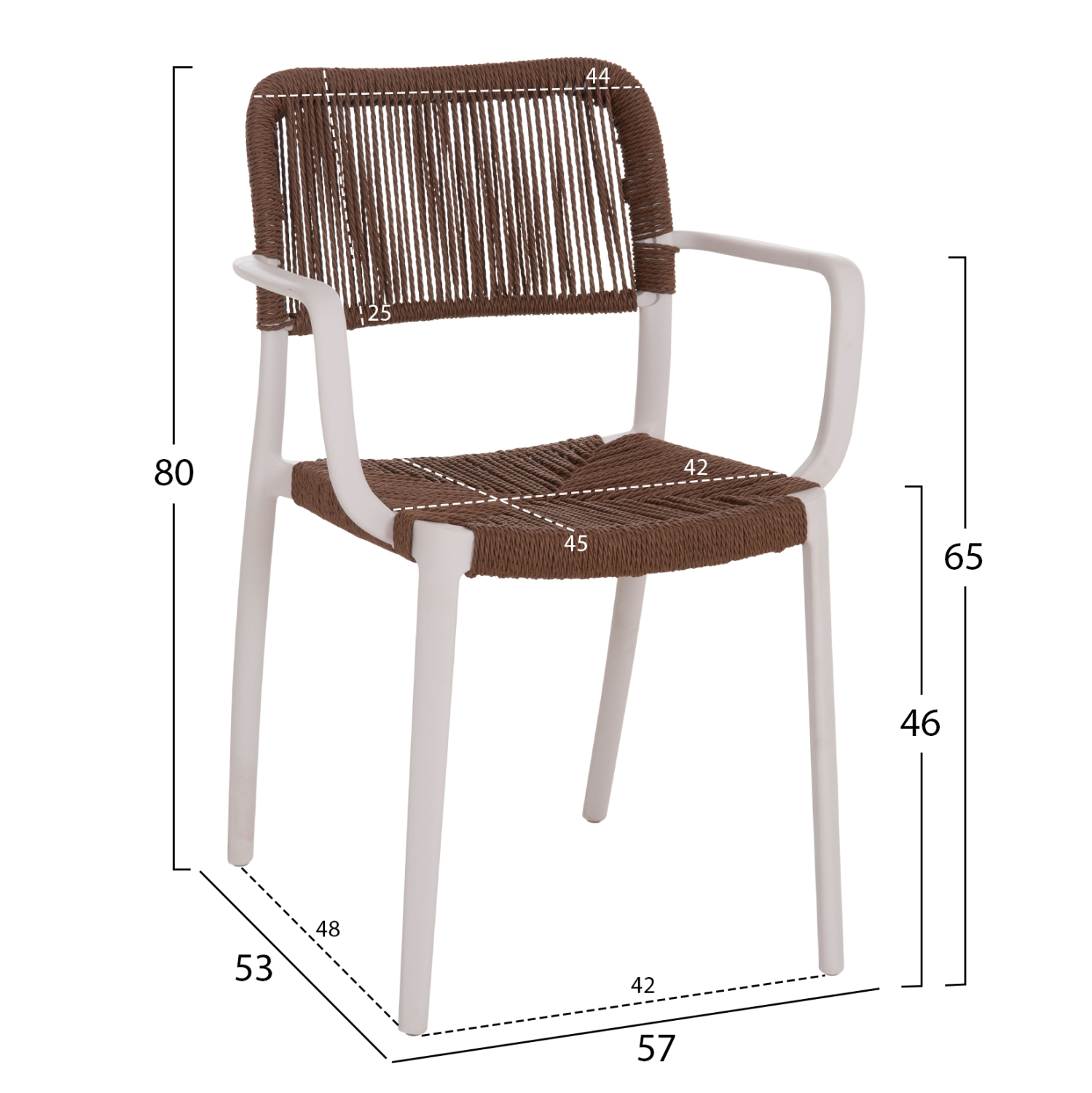 •Κάθισμα και πλάτη από συνθετικό σχοινί σε καφέ απόχρωση.