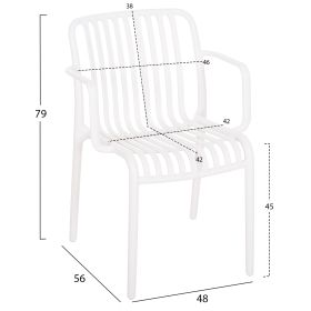 Η πολυθρόνα CONVEE είναι μια κλασσική πολυθρόνα εξωτερικού χώρου που θα καλύψει κάθε σας ανάγκη στην αυλή ή το μπαλκόνι σας. Είναι ποιοτική και κομψή στην όψη, ενώ το καμπυλωτό κάθισμα στο μπροστά μέρος όπως και τα σχετικά ψηλά της μπράτσα την καθιστούν αναπαυτικότατη. Όλη η πολυθρόνα είναι από δοκούς πολυπροπυλενίου σε ΛΕΥΚΟ χρώμα. Είναι στοιβαζόμενη, ελαφριά και άνετη, ιδανική επιλογή και για επαγγελματική χρήση, όπως σε catering κτλ.
