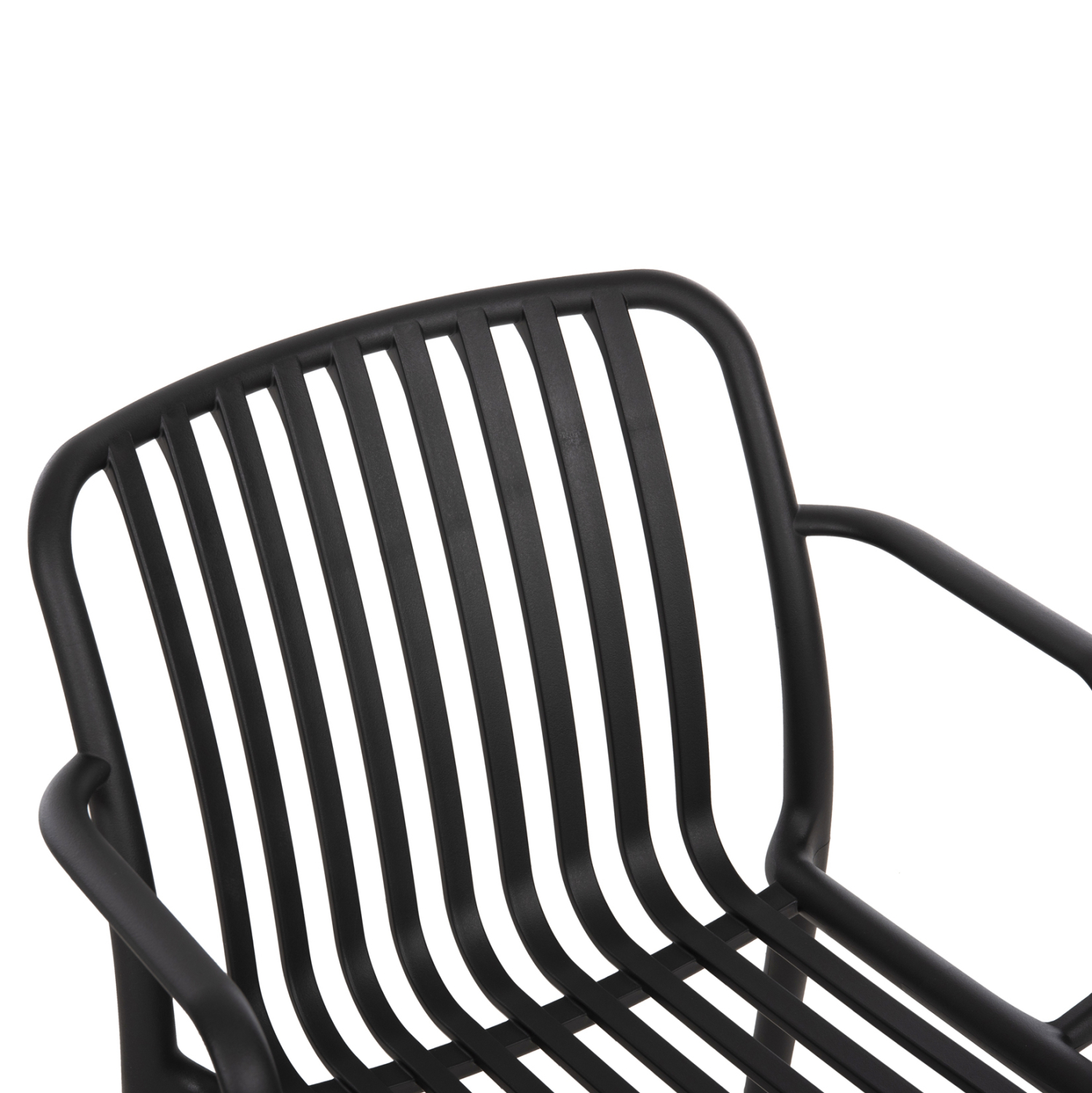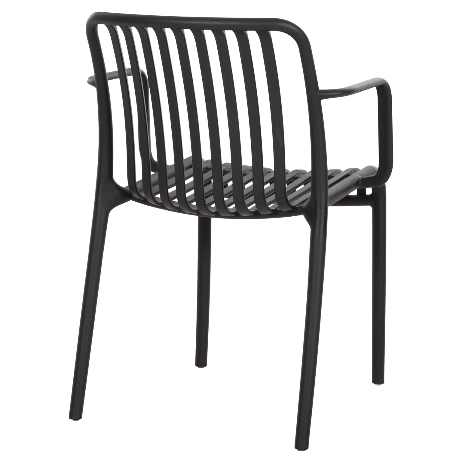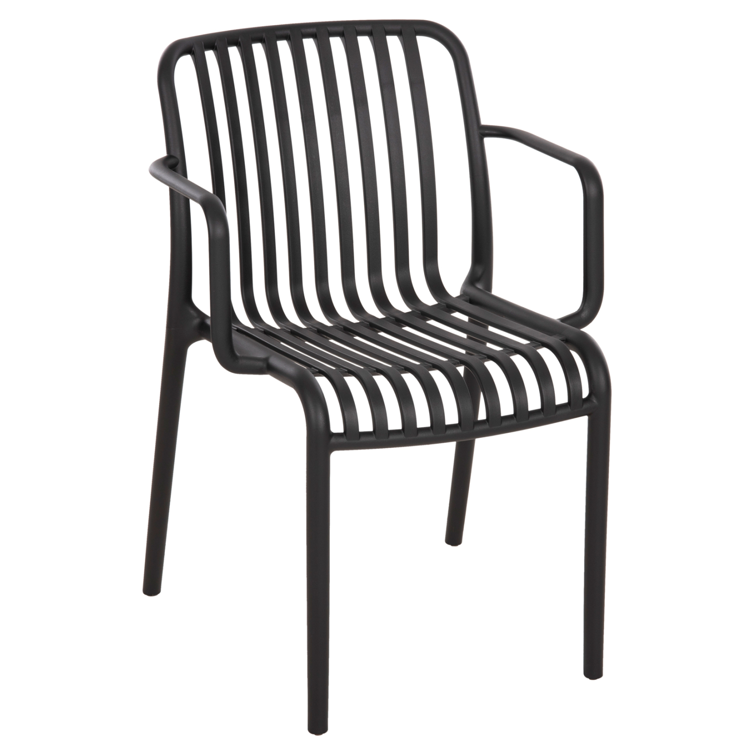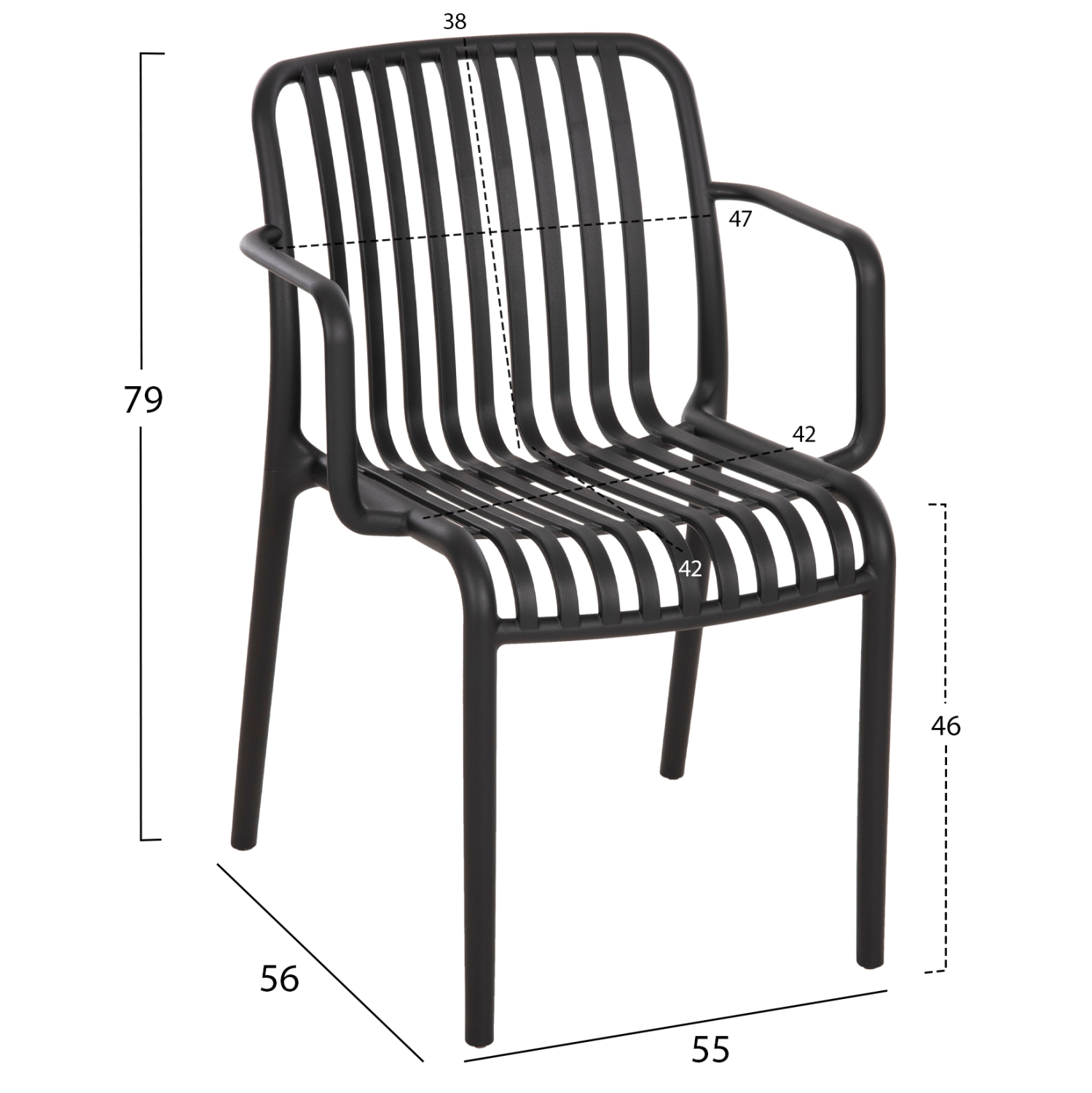 Η πολυθρόνα CONVEE είναι μια κλασσική πολυθρόνα εξωτερικού χώρου που θα καλύψει κάθε σας ανάγκη στην αυλή ή το μπαλκόνι σας. Είναι ποιοτική και κομψή στην όψη, ενώ το καμπυλωτό κάθισμα στο μπροστά μέρος όπως και τα σχετικά ψηλά της μπράτσα την καθιστούν αναπαυτικότατη. Όλη η πολυθρόνα είναι από δοκούς πολυπροπυλενίου σε ΜΑΥΡΟ χρώμα. Είναι στοιβαζόμενη, ελαφριά και άνετη, ιδανική επιλογή και για επαγγελματική χρήση, όπως σε catering κτλ.