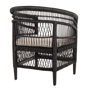 Η πολυθρόνα MALAWI είναι πανέμορφη! Μοντέρνα, άνετη και σταθερή με κυρίαρχο χρώμα το ΜΑΥΡΟ. Το ημικυκλικό κάθισμα της πολυθρόνας είναι άνετο και διαθέτει ΛΕΥΚΟ μαξιλάρι μέτριας σκληρότητας ενώ η πολυθρόνα δίνει την αίσθηση ότι αγκαλιάζει το σώμα. Αυτό όμως που τραβάει τα βλέμματα σε αυτή την πολυθρόνα είναι ότι η πλάτη με τα μπράτσα αποτελούν μια συνεχόμενη κατασκευή με επένδυση από RATTAN που δίνει μια αίσθηση μοναδικότητας στην πολυθρόνα!