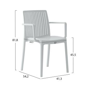 Η πολυθρόνα πολυπροπυλενίου IDA σε ΛΕΥΚΟ χρώμα είναι νέα προσθήκη στην γκάμα μας. Πρόκειται για ιδανική πρόταση για χρήση σε εξωτερικούς χώρους, είτε επαγγελματικούς (χώροι δεξιώσεων, εταιρείες catering, κλπ.) είτε για το σπίτι. Είναι ένα χυτό σύνολο καθίσματος-πλάτης-μπράτσων-ποδιών με ψηλά μπράτσα. Επίσης, η μεσαίου ύψους αεριζόμενη πλάτη και το κάθισμα είναι ικανοποιητικού μεγέθους και είναι σίγουρο ότι θα ικανοποιήσουν όλους όσοι καθίσουν σε αυτή την πολυθρόνα.