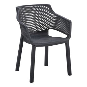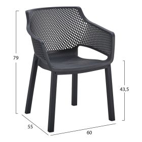 Η πολυθρόνα πολυπροπυλενίου PEGGY σε ΜΑΥΡΟ χρώμα αποτελεί μια κλασική επιλογή για χρήση σε εξωτερικούς χώρους, είτε επαγγελματικούς μιας και είναι ΣΤΟΙΒΑΖΟΜΕΝΗ (χώροι δεξιώσεων, εταιρείες catering, κλπ.) είτε για το σπίτι. Αποτελείται από ένα χυτό «τρυπητό» σύνολο καθίσματος-πλάτης-μπράτσων για καλύτερο αερισμό.