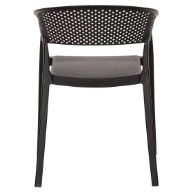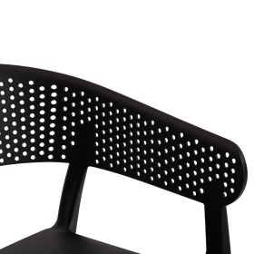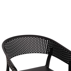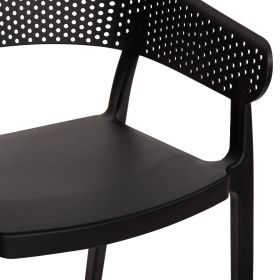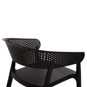 Πολυθρόνα πολυπροπυλενίου σε ΜΑΥΡΟ χρώμα. Ιδανική πρόταση για χρήση σε εξωτερικούς χώρους, είτε επαγγελματικούς (χώροι δεξιώσεων, εταιρείες catering, κλπ.) είτε για το σπίτι. Η πολυθρόνα αποτελείται από ένα λείο κάθισμα και μια ημικυκλική, ανεξάρτητη και «τρυπητή» πλάτη και μπράτσα. Είναι πανέμορφη και θα αναβαθμίσει αισθητικά κάθε εξωτερικό χώρο.