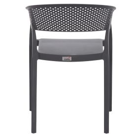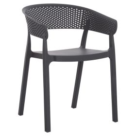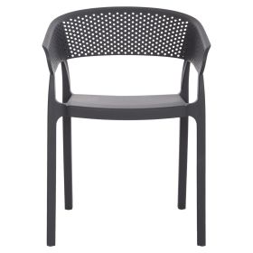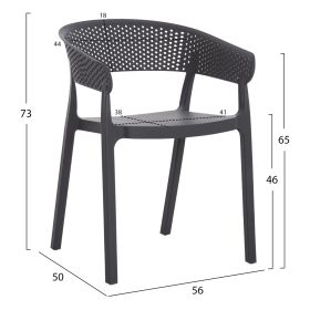 Πολυθρόνα πολυπροπυλενίου σε ΓΚΡΙ χρώμα. Ιδανική πρόταση για χρήση σε εξωτερικούς χώρους, είτε επαγγελματικούς (χώροι δεξιώσεων, εταιρείες catering, κλπ.) είτε για το σπίτι. Η πολυθρόνα αποτελείται από ένα λείο κάθισμα και μια ημικυκλική, ανεξάρτητη και «τρυπητή» πλάτη και μπράτσα. Είναι πανέμορφη και θα αναβαθμίσει αισθητικά κάθε εξωτερικό χώρο.