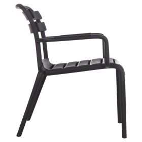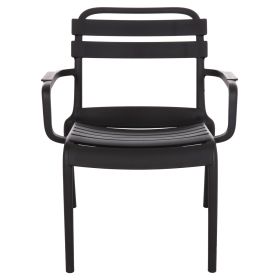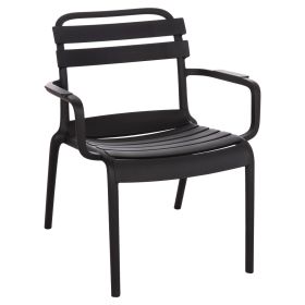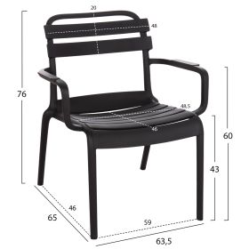 Η πολυθρόνα σαλονιού KORVER είναι για τον εξωτερικό χώρο και θα καλύψει κάθε σας ανάγκη στην αυλή ή το μπαλκόνι σας. Είναι ποιοτική και κομψή στην όψη, ενώ το καμπυλωτό κάθισμα στο μπροστά μέρος όπως και τα σχετικά ψηλά της μπράτσα την καθιστούν αναπαυτικότατη. Όλη η πολυθρόνα είναι από πολυπροπυλένιο σε ΜΑΥΡΟ χρώμα. Είναι ΣΤΟΙΒΑΖΟΜΕΝΗ, ελαφριά και άνετη, ιδανική επιλογή και για επαγγελματική χρήση, όπως σε catering κτλ.
