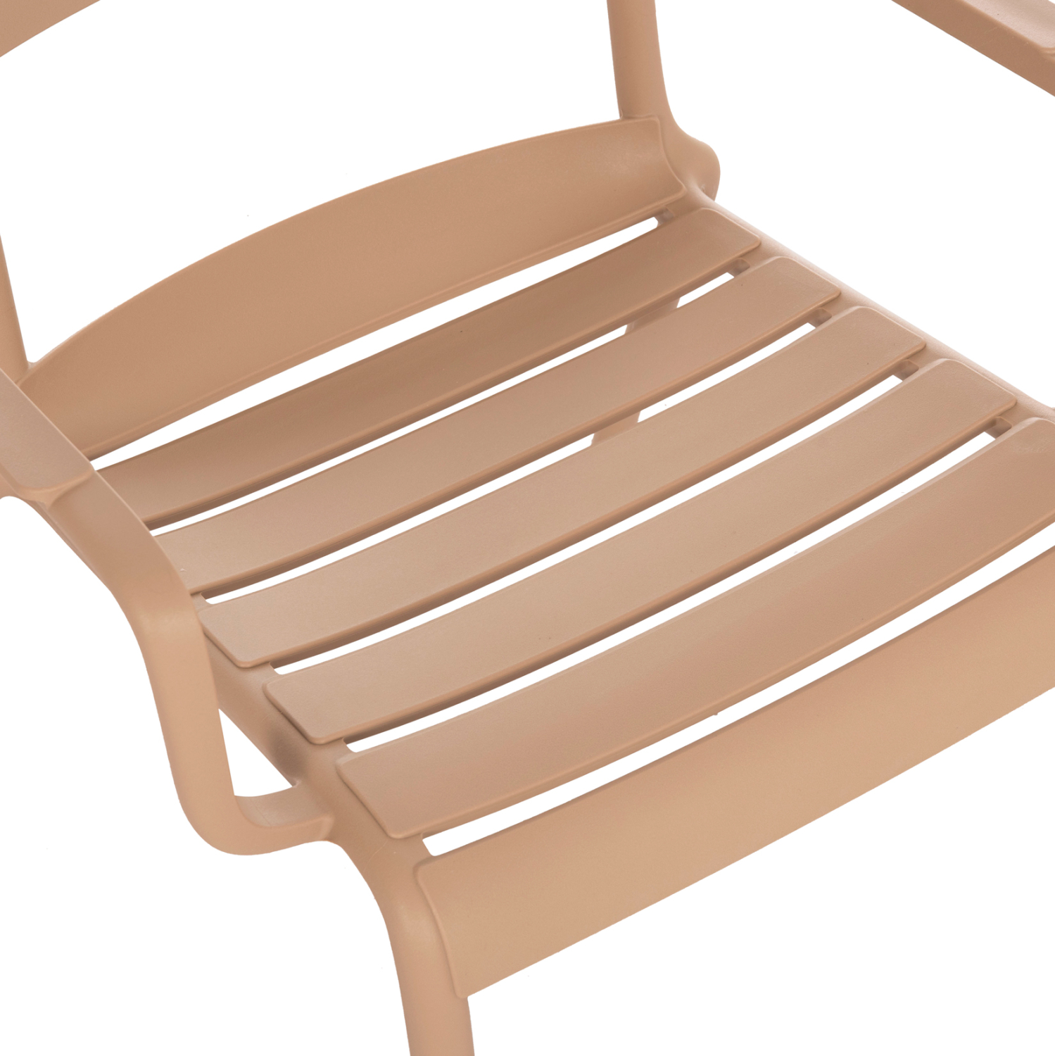 Η πολυθρόνα σαλονιού KORVER είναι για τον εξωτερικό χώρο και θα καλύψει κάθε σας ανάγκη στην αυλή ή το μπαλκόνι σας. Είναι ποιοτική και κομψή στην όψη, ενώ το καμπυλωτό κάθισμα στο μπροστά μέρος όπως και τα σχετικά ψηλά της μπράτσα την καθιστούν αναπαυτικότατη. Όλη η πολυθρόνα είναι από πολυπροπυλένιο σε ΚΑΠΟΥΤΣΙΝΟ χρώμα. Είναι ΣΤΟΙΒΑΖΟΜΕΝΗ, ελαφριά και άνετη, ιδανική επιλογή και για επαγγελματική χρήση, όπως σε catering κτλ.