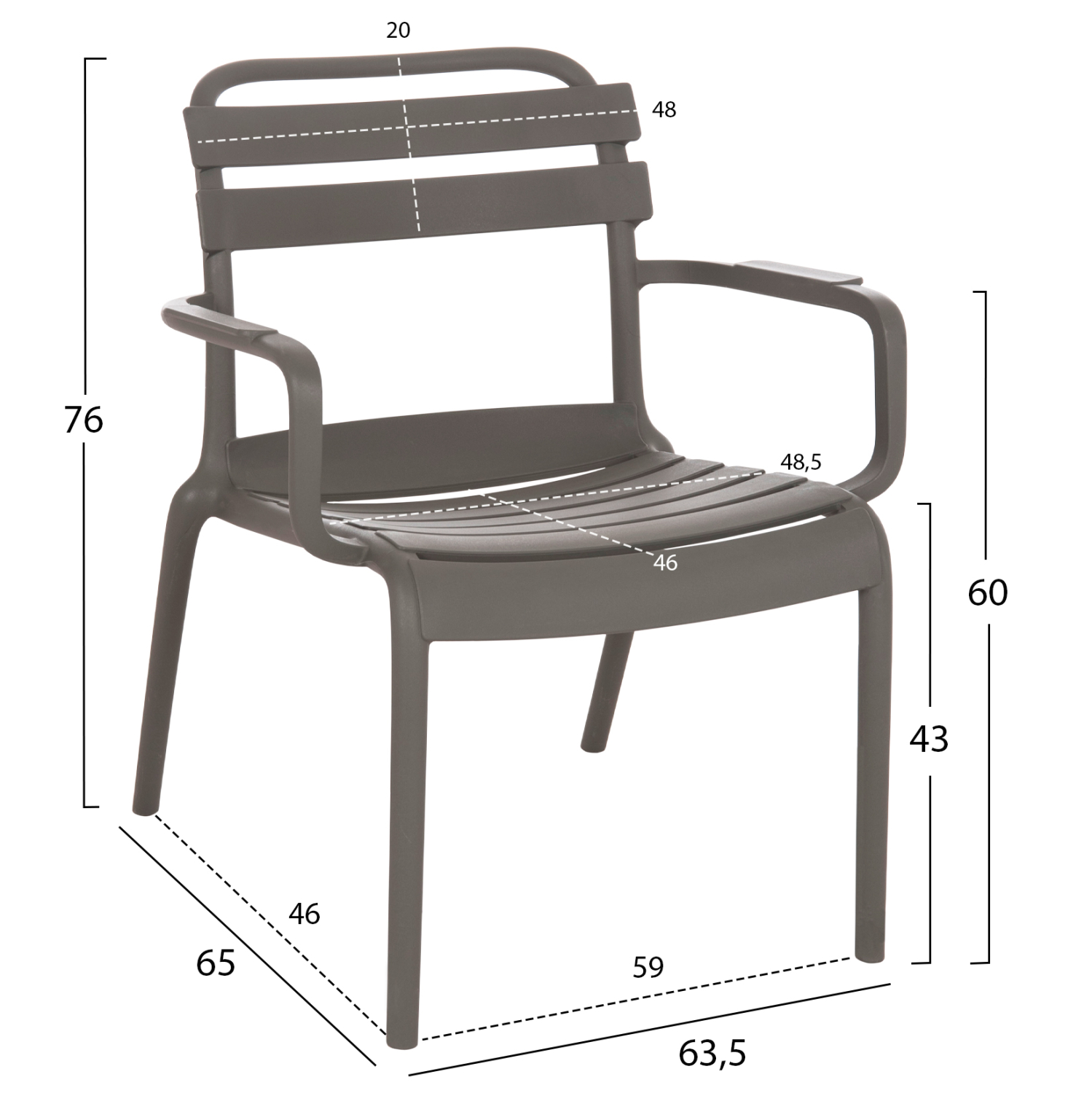 Η πολυθρόνα σαλονιού KORVER είναι για τον εξωτερικό χώρο και θα καλύψει κάθε σας ανάγκη στην αυλή ή το μπαλκόνι σας. Είναι ποιοτική και κομψή στην όψη, ενώ το καμπυλωτό κάθισμα στο μπροστά μέρος όπως και τα σχετικά ψηλά της μπράτσα την καθιστούν αναπαυτικότατη. Όλη η πολυθρόνα είναι από πολυπροπυλένιο σε DARK OLIVE GREEN χρώμα. Είναι ΣΤΟΙΒΑΖΟΜΕΝΗ, ελαφριά και άνετη, ιδανική επιλογή και για επαγγελματική χρήση, όπως σε catering κτλ.
