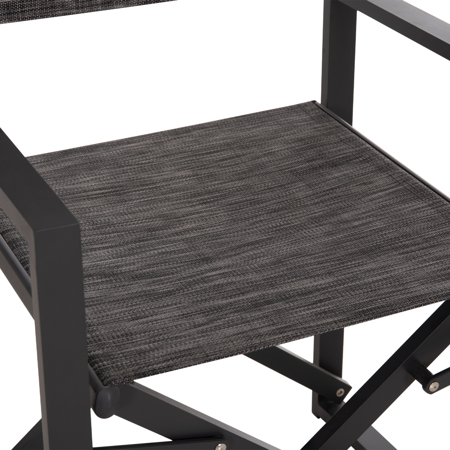 Η επένδυση της πολυθρόνας έχει γίνει με αδιάβροχο ενισχυμένο ύφασμα textilene 2x1. Αυτό είναι ένα παχύ, ισχυρό και ανθεκτικό πολυεστερικό ύφασμα. Σημαίνει ότι είναι κατασκευασμένο από πολυεστερικά νήματα υφασμένα από άκρη σε άκρη, και είναι επικαλυμμένο με PVC.