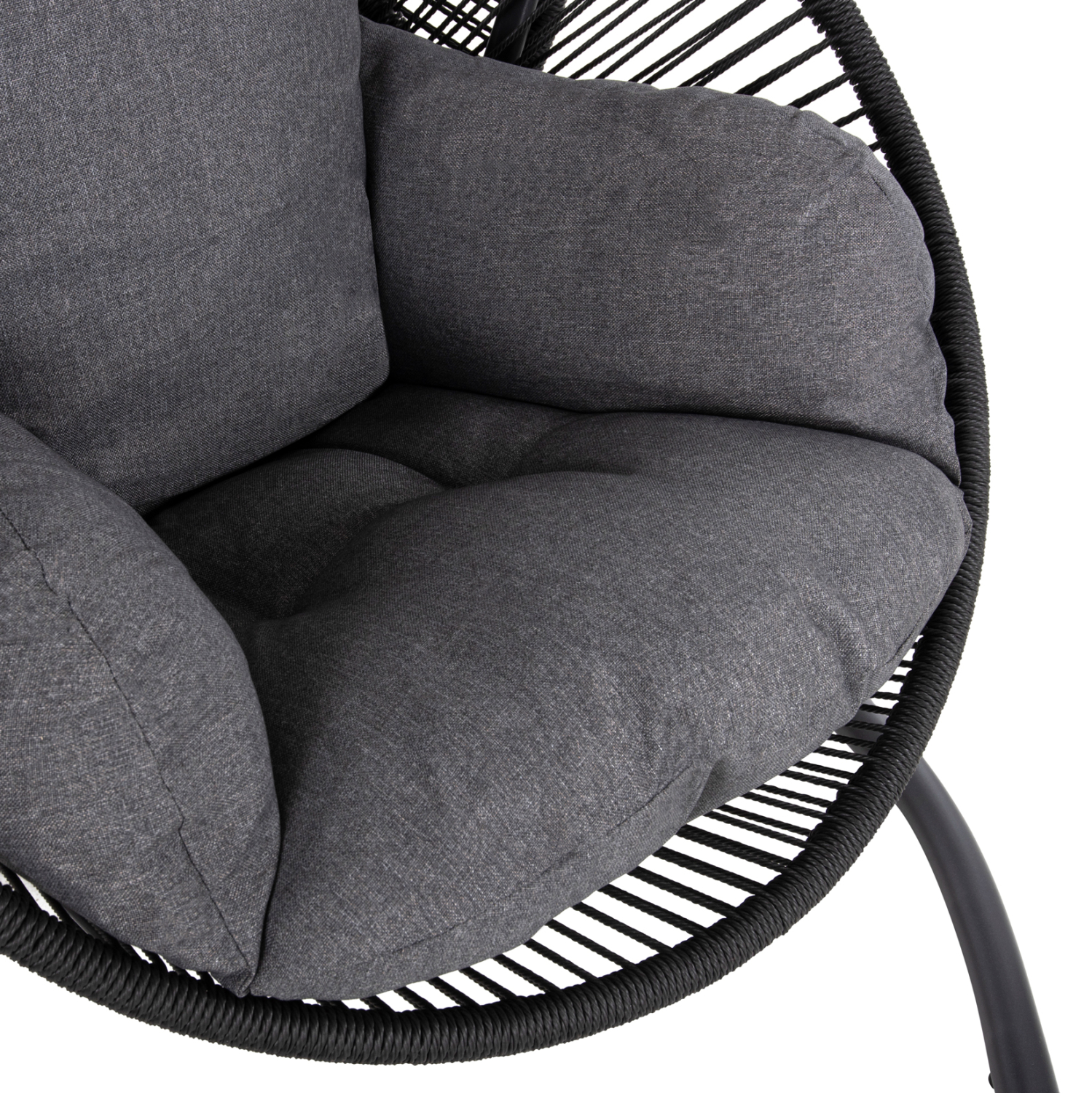 Η μονή κρεμαστή φωλιά RULER ξεχωρίζει στην κατηγορία της. Διαχρονικά, οι αιώρες αποτελούν την επιτομή της ξεγνοιασιάς και της χαλάρωσης. Εμείς σας προσφέρουμε την αιώρα αυτή σε στυλ κρεμαστής φωλιάς σαν μεγάλη πολυθρόνα, κατασκευασμένη από συνθετικό twisted Rattan (στριφτό για να μοιάζει με σχοινί) σε ΜΑΥΡΟ χρώμα με ΓΚΡΙ αναπαυτικότατα μαξιλάρια! Ο σκελετός κρέμασης της αιώρας-φωλιάς είναι από ΜΑΥΡΟ ενισχυμένο μέταλλο και η αιώρα κρέμεται με αλυσίδα από ένα σημείο κρέμασης. Η φωλιά αυτή μπορεί να χρησιμοποιηθεί τόσο για οικιακή όσο και για επαγγελματική χρήση.