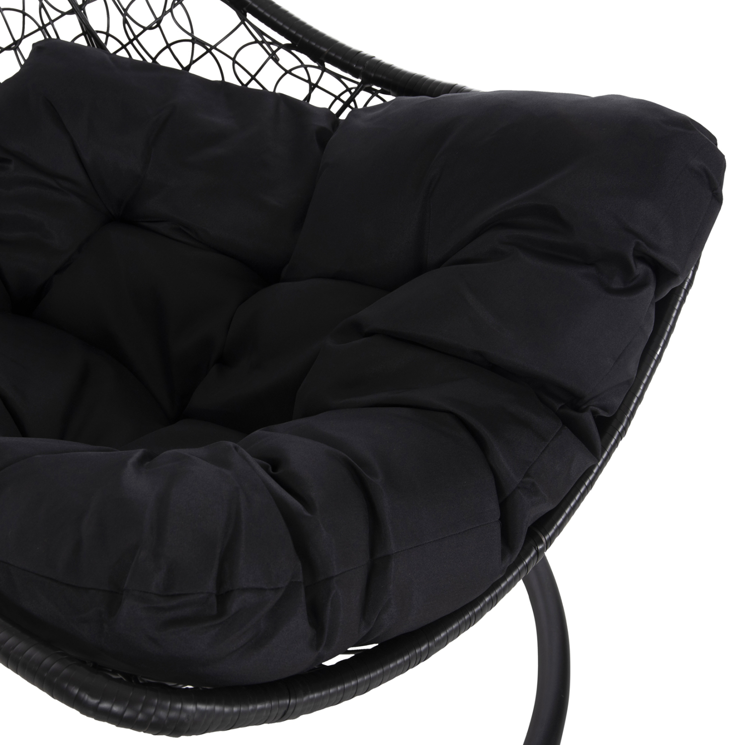Η μονή κρεμαστή φωλιά MILLIE είναι πανέμορφη. Διαχρονικά, οι αιώρες αποτελούν την επιτομή της ξεγνοιασιάς και της χαλάρωσης. Εμείς σας προσφέρουμε την αιώρα αυτή σε στυλ κρεμαστής φωλιάς σαν μεγάλη πολυθρόνα, κατασκευασμένη από συνθετικό Rattan σε χρώμα ΜΑΥΡΟ με ΜΑΥΡΑ, επίσης, μαξιλάρια! Η στρογγυλή βάση της αιώρας-φωλιάς είναι από ΜΑΥΡΟ ενισχυμένο μέταλλο και η αιώρα κρέμεται με αλυσίδα από ένα σημείο κρέμασης. Η φωλιά αυτή μπορεί να χρησιμοποιηθεί τόσο για οικιακή όσο και για επαγγελματική χρήση.