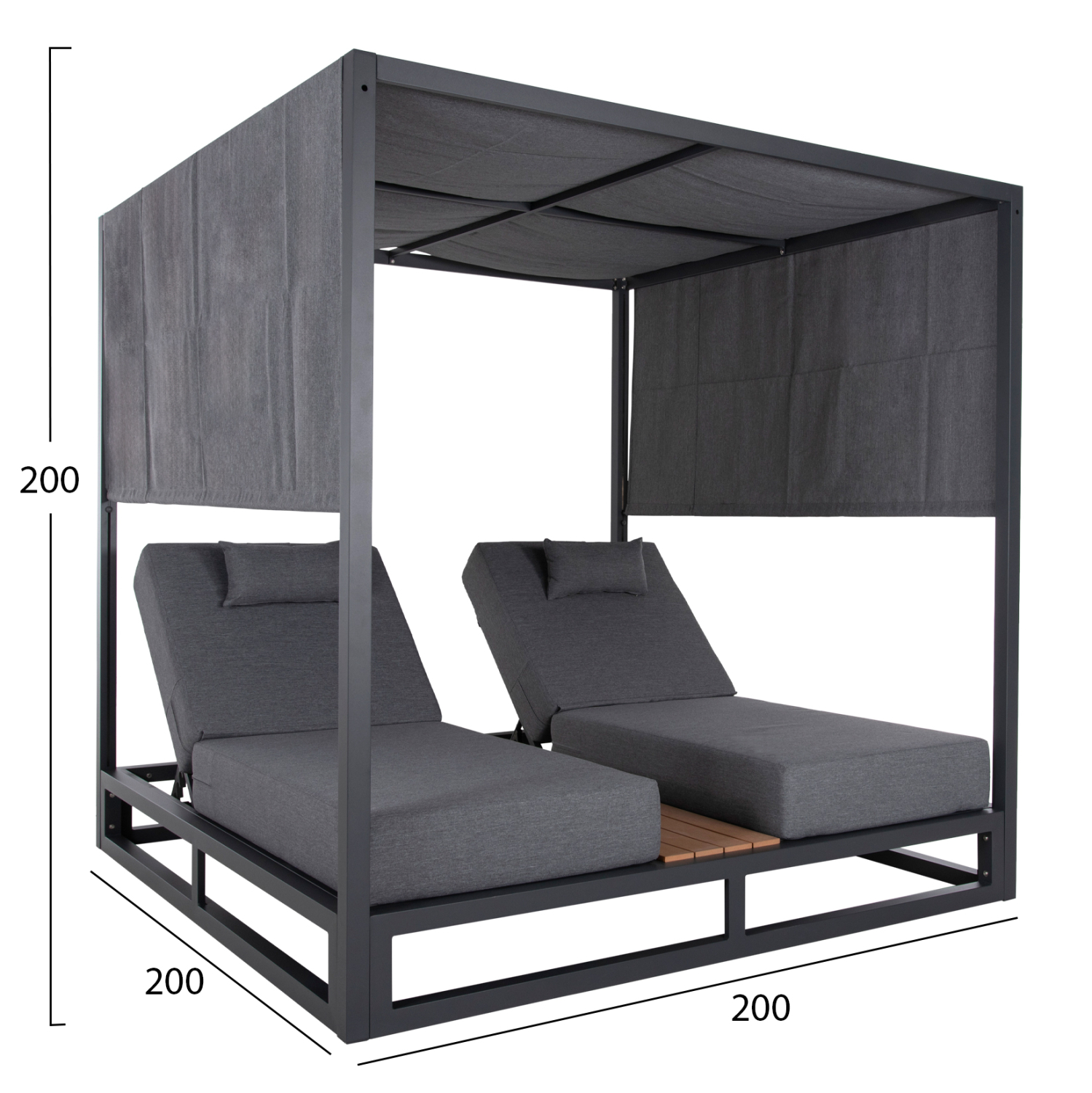Ξαπλώστρες: 187x77x82Υ εκ (x2)—Απόσταση καθίσματος από έδαφος: 25 εκ.