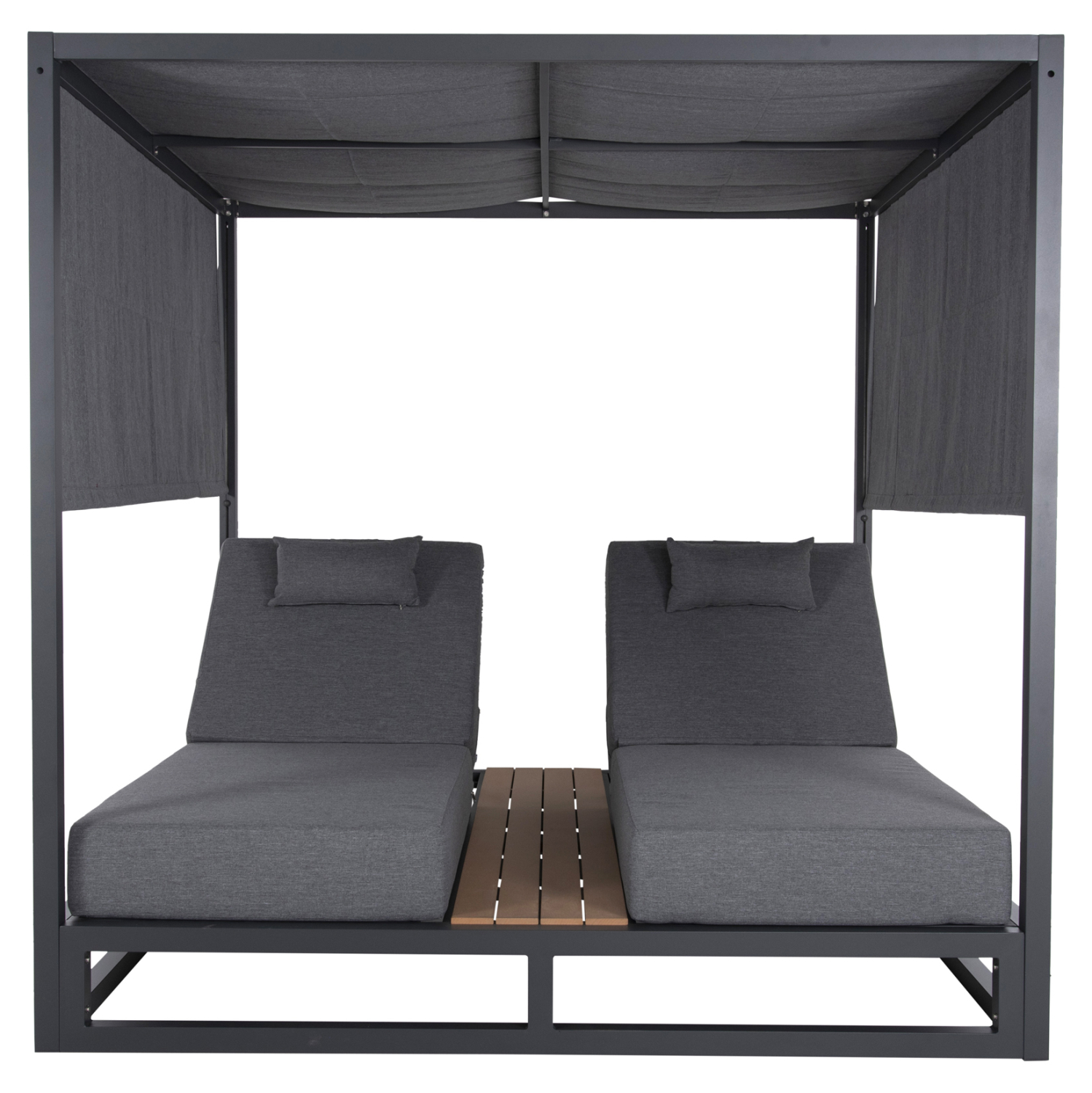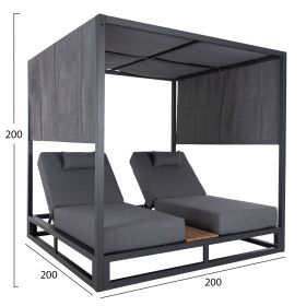 Η επαγγελματική διπλή ξαπλώστρα παραλίας GALLANT σε ΓΚΡΙ χρώμα, είναι μια πολυτελής πρόταση για την επιχείρησή σας. Η στιβαρή και εντυπωσιακή παρουσία της που οφείλεται στο design κύβος αλλά και στα υλικά κατασκευής της, κυριολεκτικά κλέβουν την παράσταση. Το παχύ στρώμα με τα μαξιλαράκια κεφαλής και η επιφάνεια από polywood στην μέση υπόσχονται στιγμές ξενοιασιάς και χαλάρωσης, όπως και το σκίαστρο που προστατεύει από τον ήλιο. TIP: Το σκίαστρο ανεβοκατεβαίνει στις δύο πλευρές ταυτόχρονα με απλό τράβηγμα, μιας και αποτελείται από ένα συνεχόμενο ύφασμα.