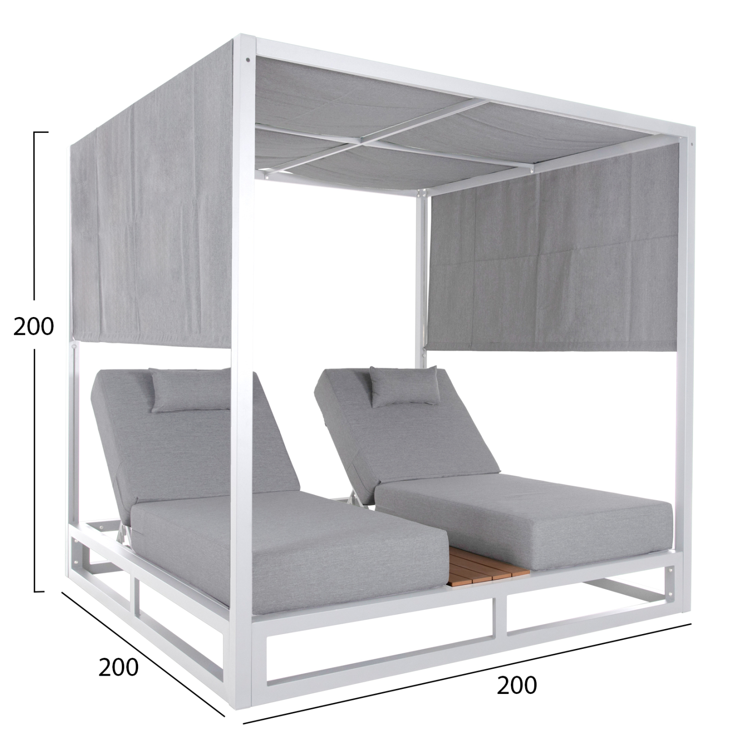 Ξαπλώστρες: 187x77x82Υ εκ (x2)—Απόσταση καθίσματος από έδαφος: 25 εκ.
