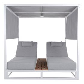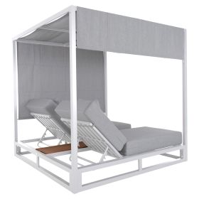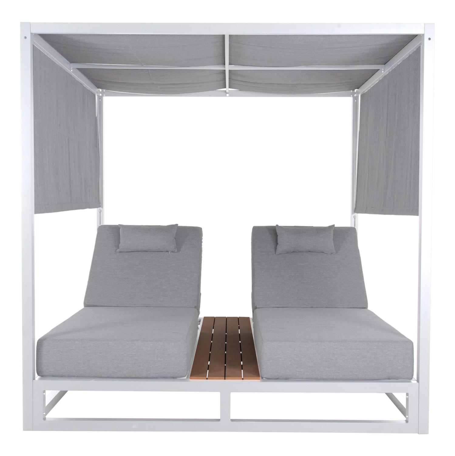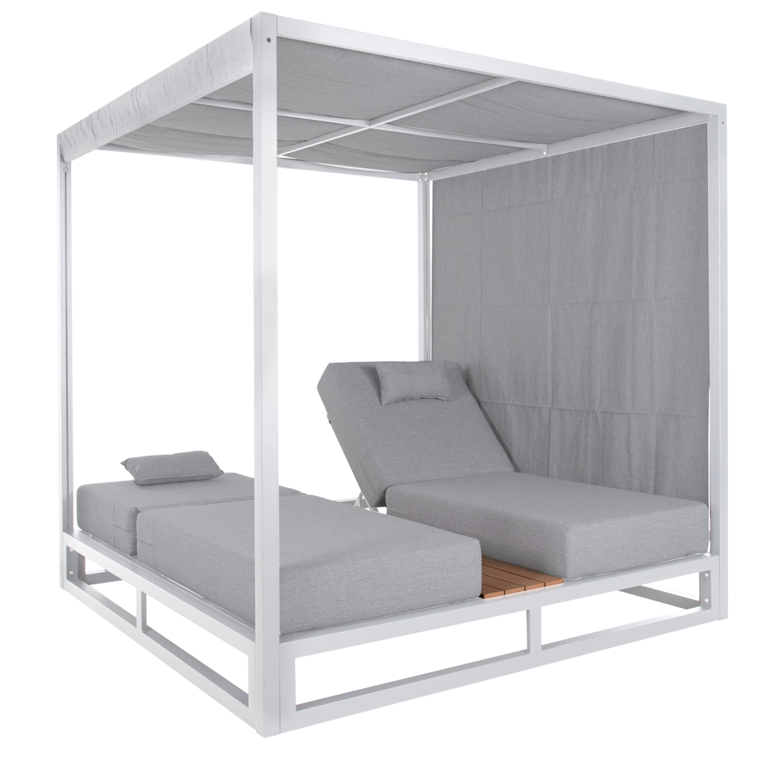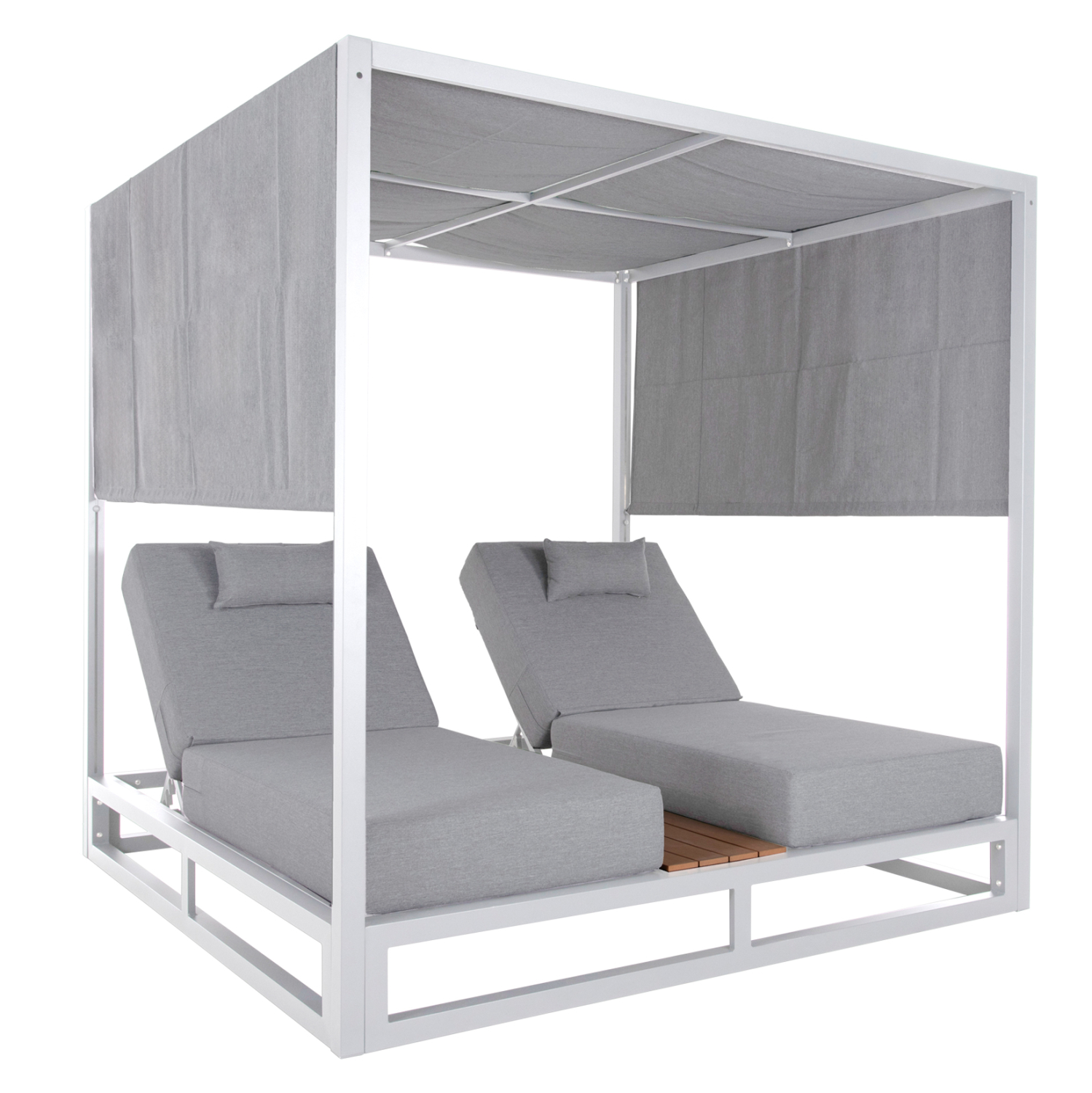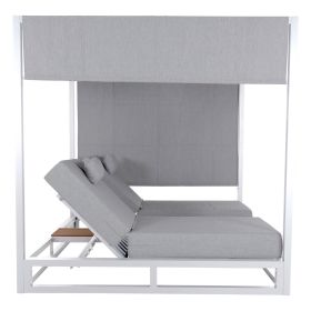 Η επαγγελματική διπλή ξαπλώστρα παραλίας GALLANT σε ΛΕΥΚΟ χρώμα, είναι μια πολυτελής πρόταση για την επιχείρησή σας. Η στιβαρή και εντυπωσιακή παρουσία της που οφείλεται στο design κύβος αλλά και στα υλικά κατασκευής της, κυριολεκτικά κλέβουν την παράσταση. Το παχύ στρώμα με τα μαξιλαράκια κεφαλής και η επιφάνεια από polywood στην μέση υπόσχονται στιγμές ξενοιασιάς και χαλάρωσης, όπως και το σκίαστρο που προστατεύει από τον ήλιο. TIP: Το σκίαστρο ανεβοκατεβαίνει στις δύο πλευρές ταυτόχρονα με απλό τράβηγμα, μιας και αποτελείται από ένα συνεχόμενο ύφασμα.