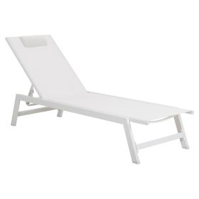 Η επαγγελματική ξαπλώστρα παραλίας RABIA σε ΛΕΥΚΟ χρώμα είναι η κλασσική και διαχρονική αξία για την παραλία. Έχει αποδείξει την χρησιμότητα αλλά και την λειτουργικότητά της εδώ και πάρα πολλά χρόνια. Είναι κατασκευασμένη από αλουμίνιο και textilene επίσης σε ΛΕΥΚΟ χρώμα. Η σκαλιέρα έχει 5 επίπεδα (μαζί με την flat). Το μαξιλάρι κεφαλής συμπληρώνει ιδανικά αυτή την ξαπλώστρα.