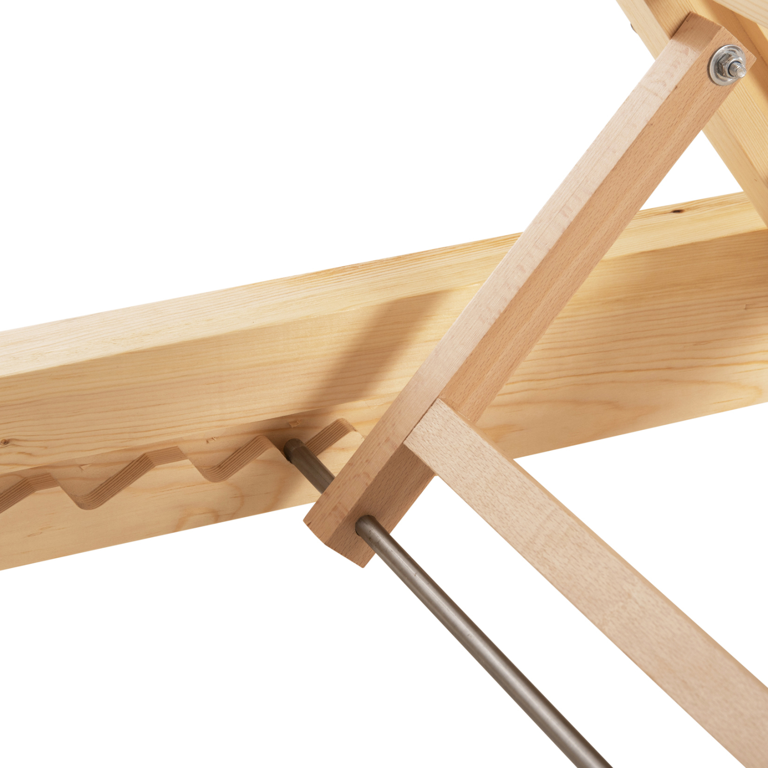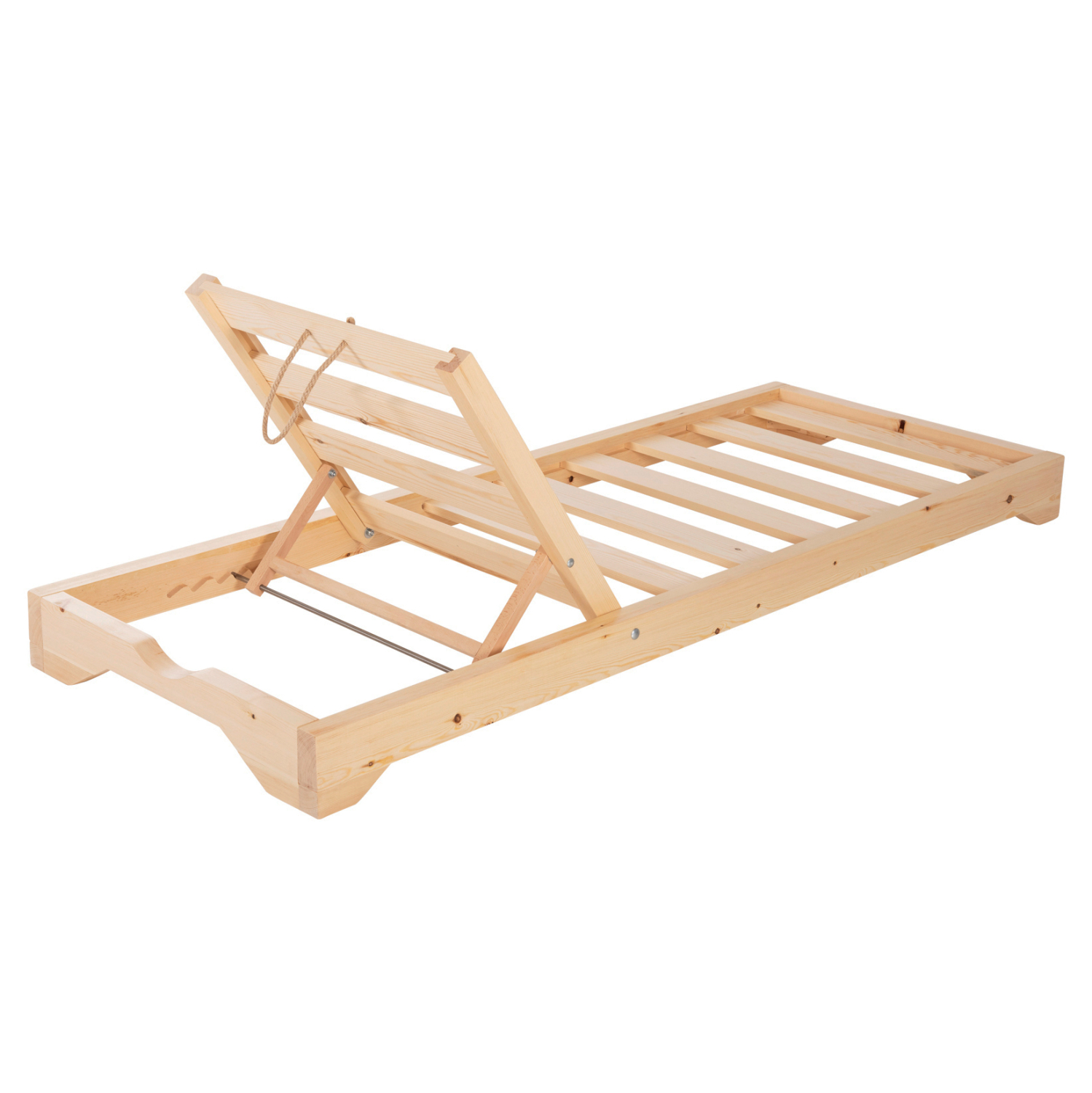 Ολόκληρη η ξαπλώστρα έχει κατασκευαστεί από ξύλο πεύκου με εμποτισμό και επιπλέον στρώση με βερνίκι νερού. Το πεύκο είναι ένα μαλακό, λευκό ή ανοιχτό κίτρινο ξύλο το οποίο είναι ελαφρύ σε βάρος με ευθύγραμμα νερά ξύλου. Αντέχει στη συρρίκνωση, διόγκωση και κάμψη. Ο εμποτισμός υπό την ευρεία έννοια είναι ο χρωματισμός του ξύλου (συνήθως βερνίκια) με την μέθοδο της εμβάπτισης.