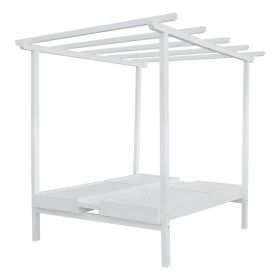 Ξαπλώστρα ΜΥΚΟΝΟΣ, από σουηδικό ξύλο, διπλή με ουρανό σε λευκή απόχρωση.