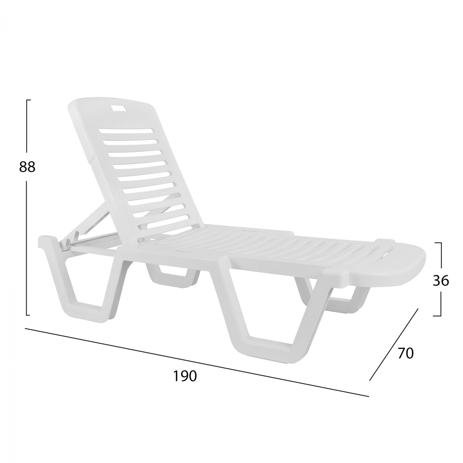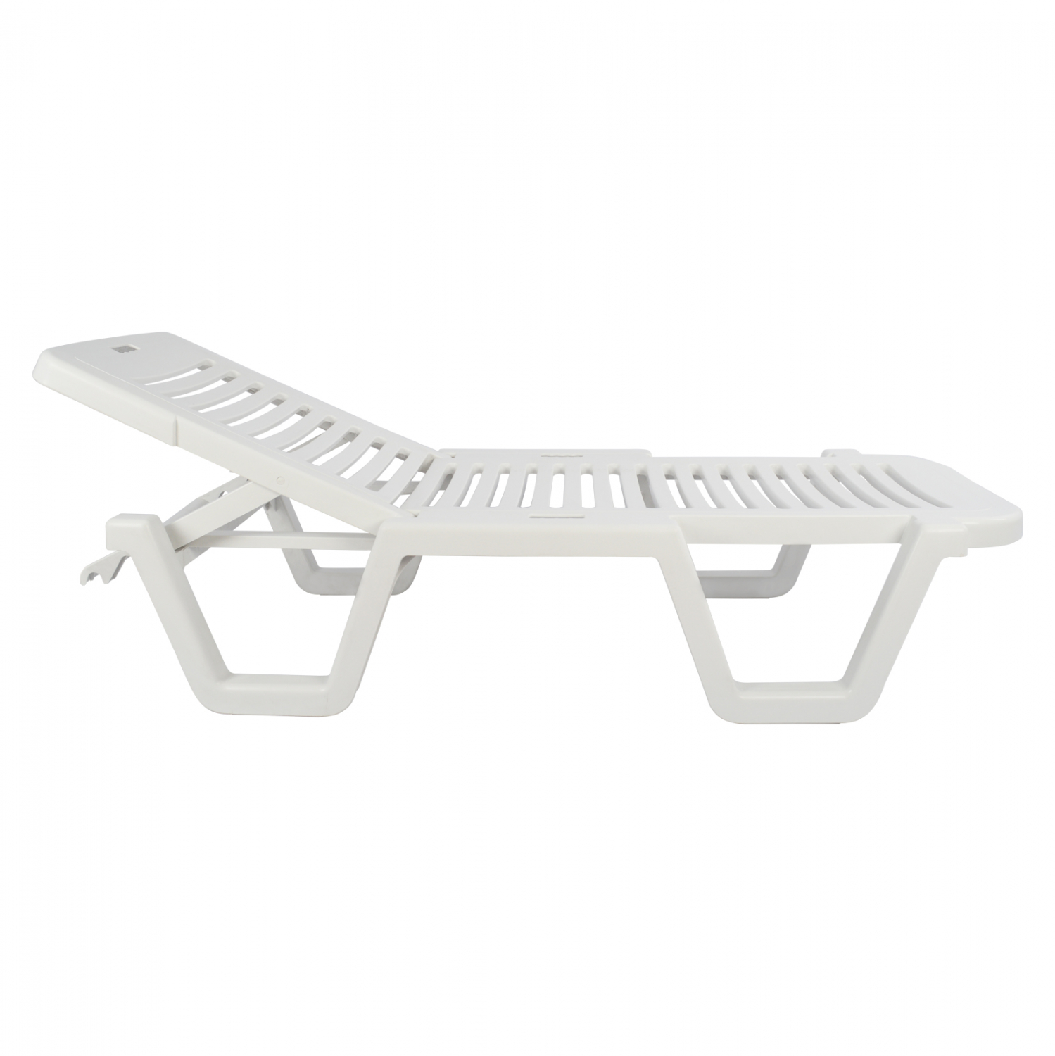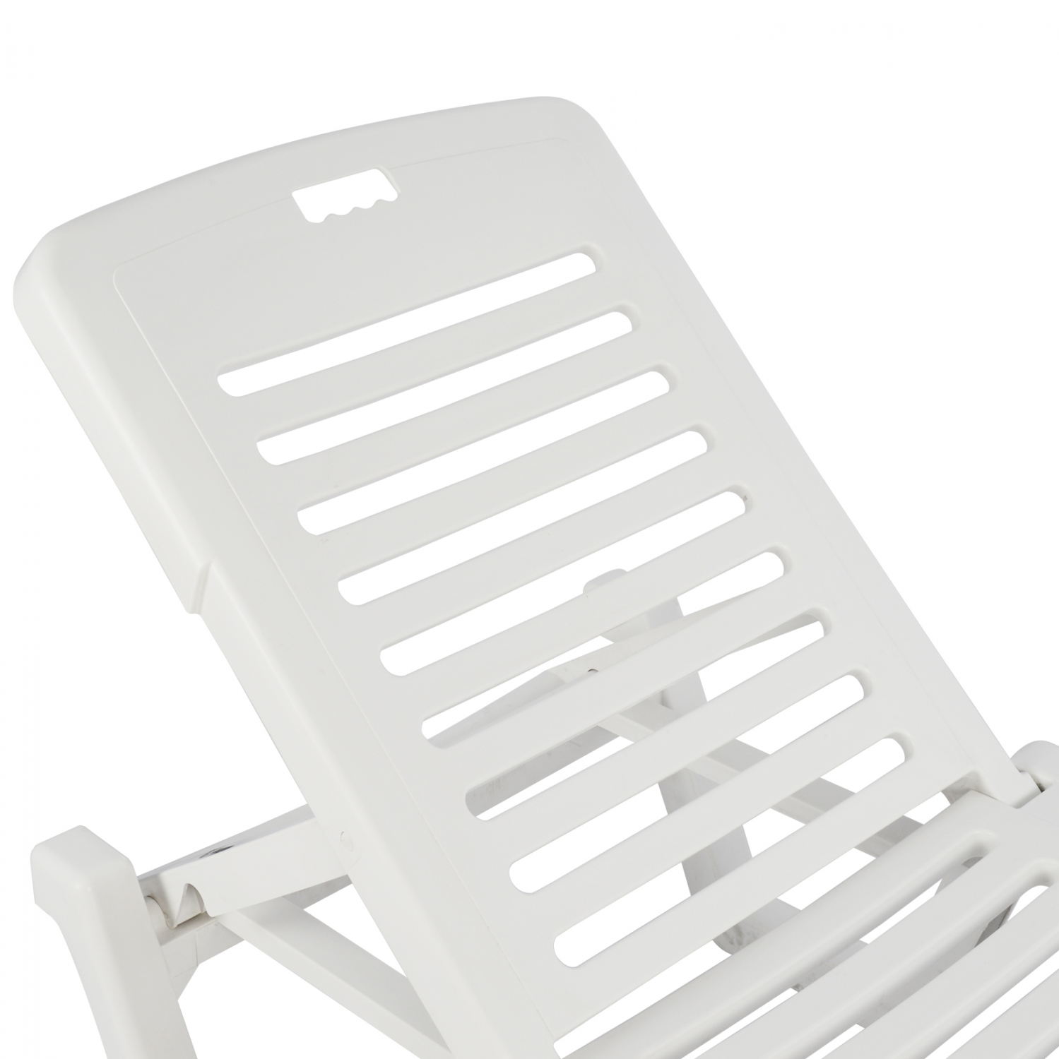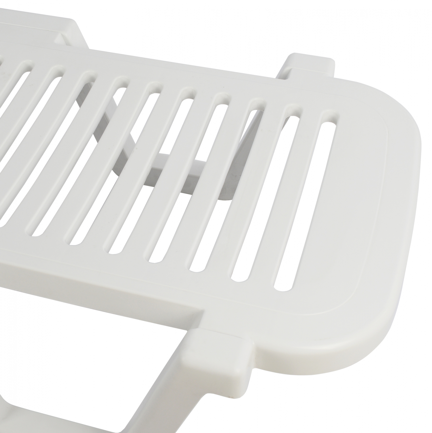 Επαγγελματική ανακλινόμενη ξαπλώστρα παραλίας, Relax, κατασκευασμένη από ανθεκτικό πλαστικό σε λευκό χρώμα.