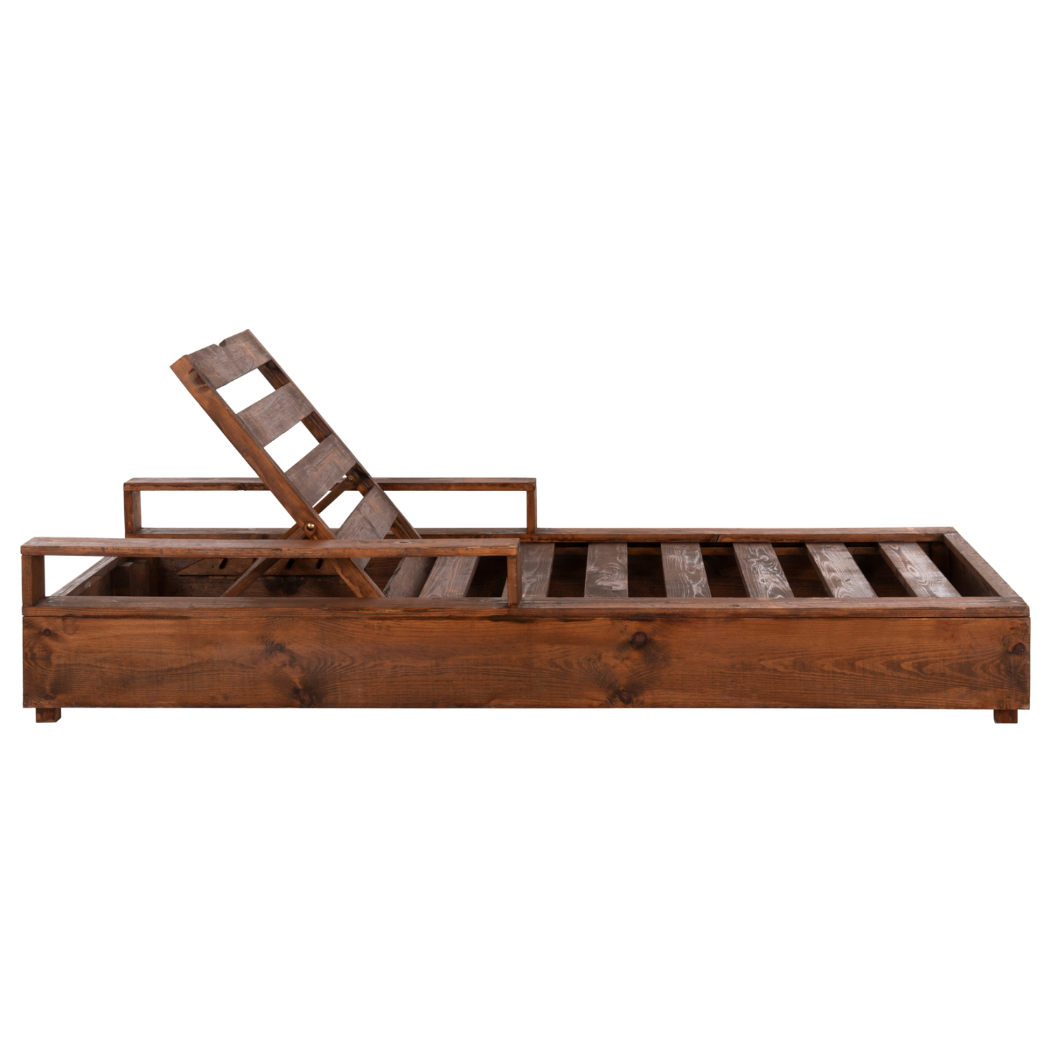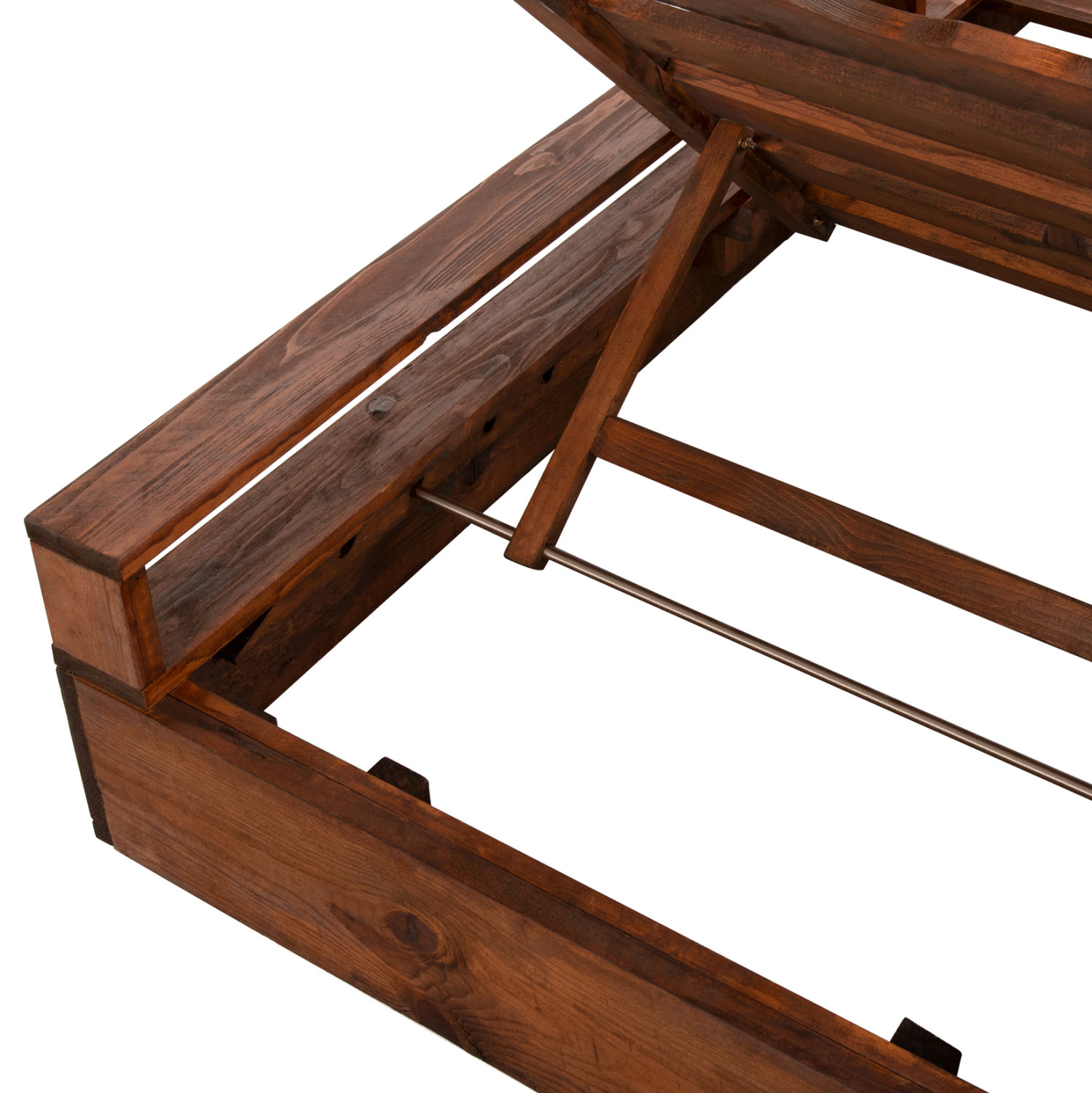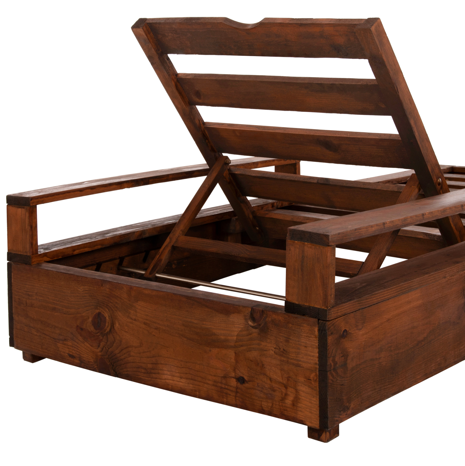 Ολόκληρη η ξαπλώστρα έχει κατασκευαστεί από ξύλο πεύκου με εμποτισμό. Το πεύκο είναι ένα μαλακό, λευκό ή ανοιχτό κίτρινο ξύλο το οποίο είναι ελαφρύ σε βάρος με ευθύγραμμα νερά ξύλου. Αντέχει στη συρρίκνωση, διόγκωση και κάμψη. Ο εμποτισμός υπό την ευρεία έννοια είναι ο χρωματισμός του ξύλου (συνήθως βερνίκια) με την μέθοδο της εμβάπτισης.