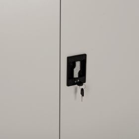 Η DURON είναι μια πρακτικότατη κοντή μεταλλική ντουλάπα με πόδια, που έχει φτιαχτεί με γνώμονα την χωρητικότητα για το μέγεθός της και την ανθεκτικότητα. Είναι δίφυλλη με τις δύο πόρτες να κλείνουν ακριβώς στην μέση της κατασκευής, ενώ το εσωτερικό είναι ένας ενιαίος χώρος χωρίς κάθετα χωρίσματα. Διαθέτει 1 ράφι που δημιουργεί 2 αποθηκευτικούς χώρους. Οι πόρτες διαθέτουν κλειδαριά που κλειδώνει με κλειδί, ενώ το χρώμα της ντουλάπας είναι πολύ ανοιχτό γκρι.