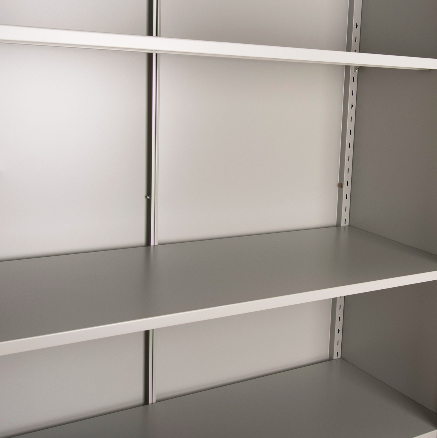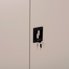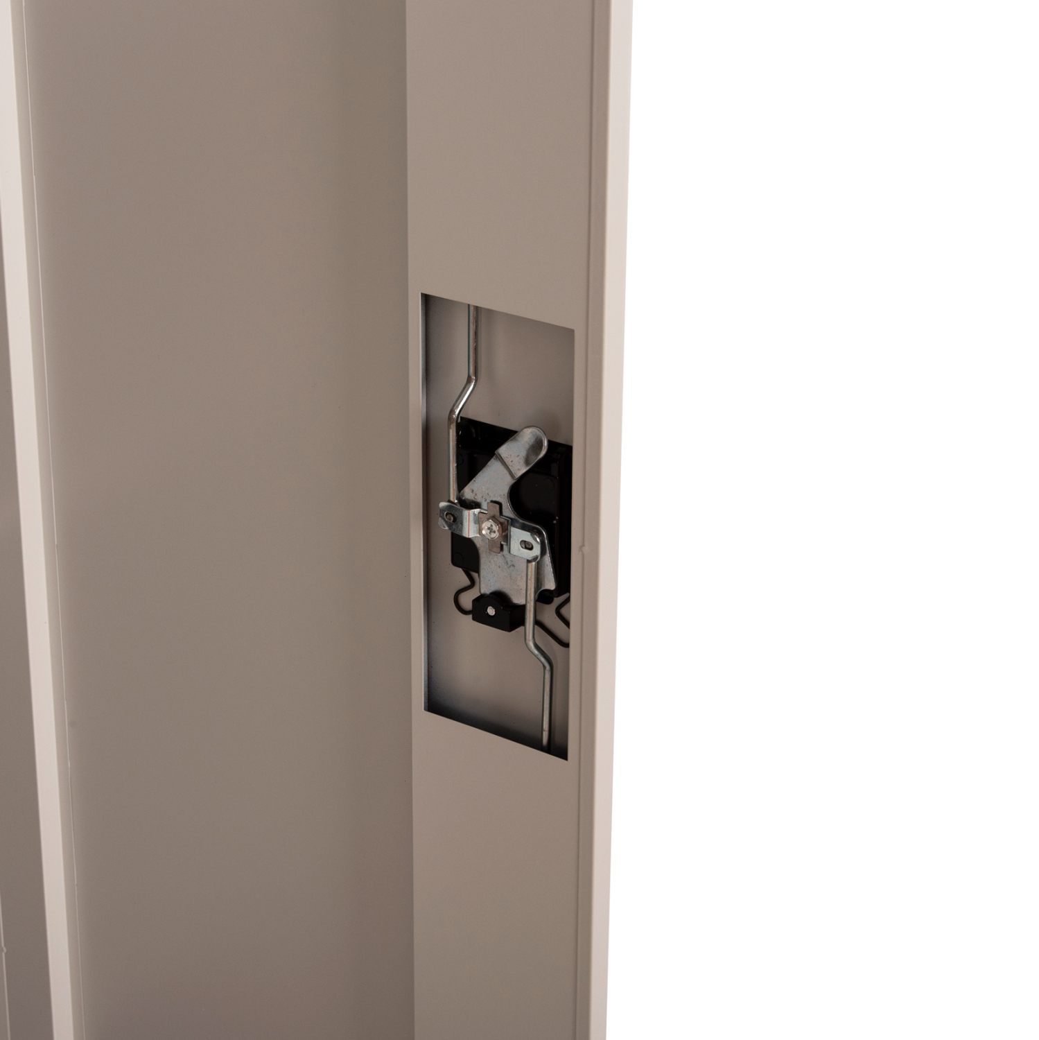Η DURON είναι μια πρακτικότατη μεταλλική ντουλάπα που έχει φτιαχτεί με γνώμονα την χωρητικότητα και την ανθεκτικότητα. Είναι δίφυλλη με τις δύο πόρτες να κλείνουν ακριβώς στην μέση της κατασκευής, ενώ το εσωτερικό είναι ένας ενιαίος χώρος χωρίς κάθετα χωρίσματα. Διαθέτει 4 ράφια που δημιουργούν 5 αποθηκευτικούς χώρους. Οι πόρτες διαθέτουν κλειδαριά που κλειδώνει με κλειδί, ενώ το χρώμα της ντουλάπας είναι πολύ ανοιχτό γκρι.