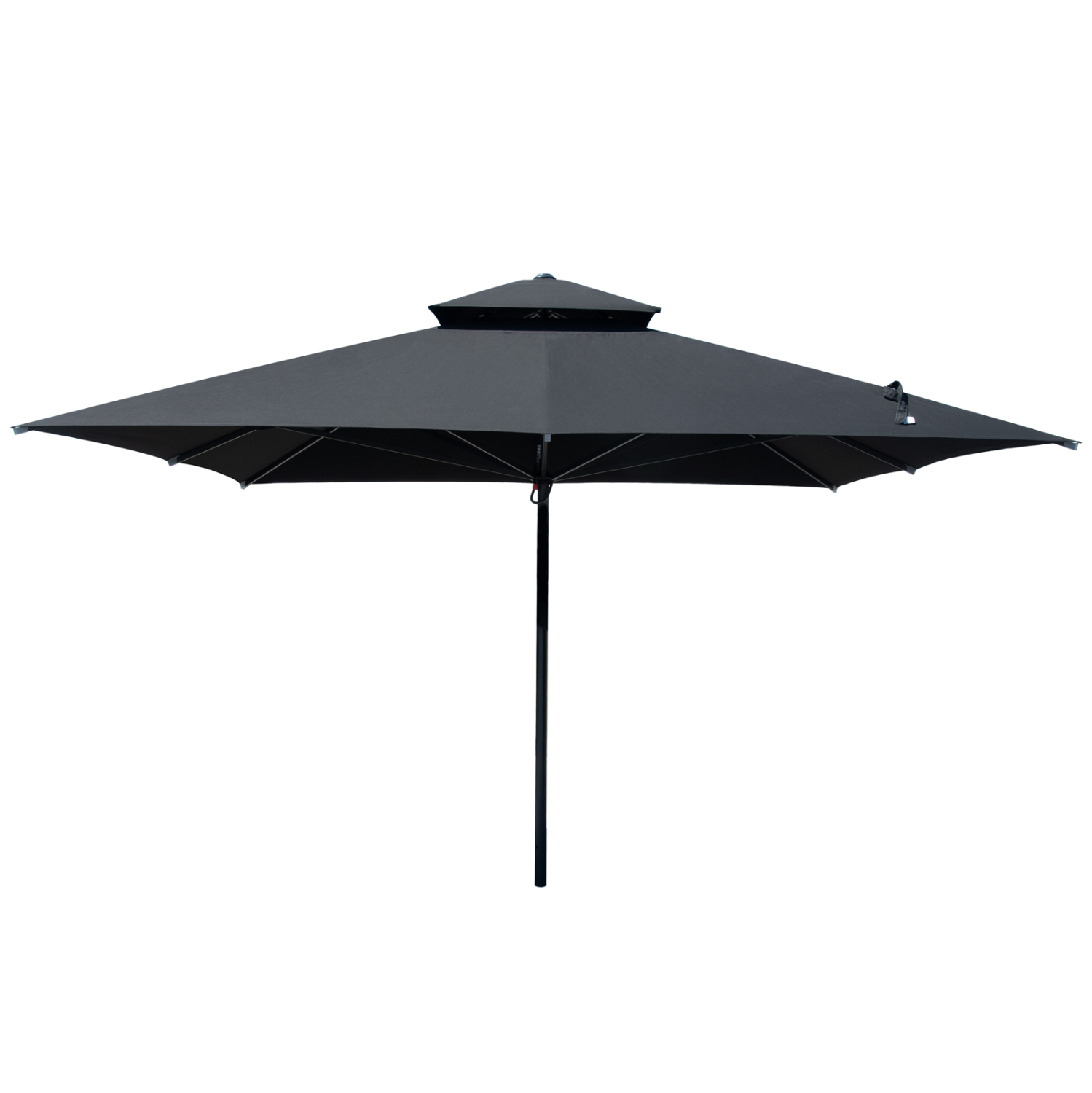Ομπρέλα αλουμινίου 4x4μ, με τηλεσκοπικό μηχανισμό, ενισχυμένο αεραγωγό και σκελετό.