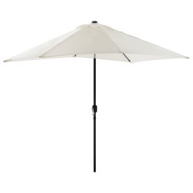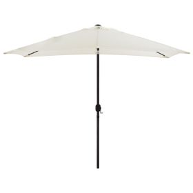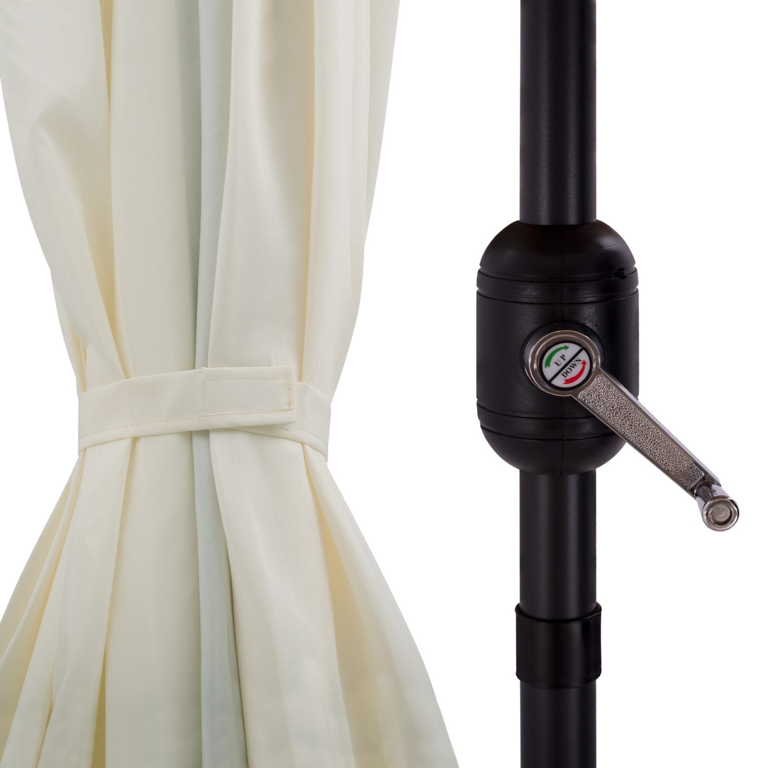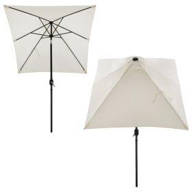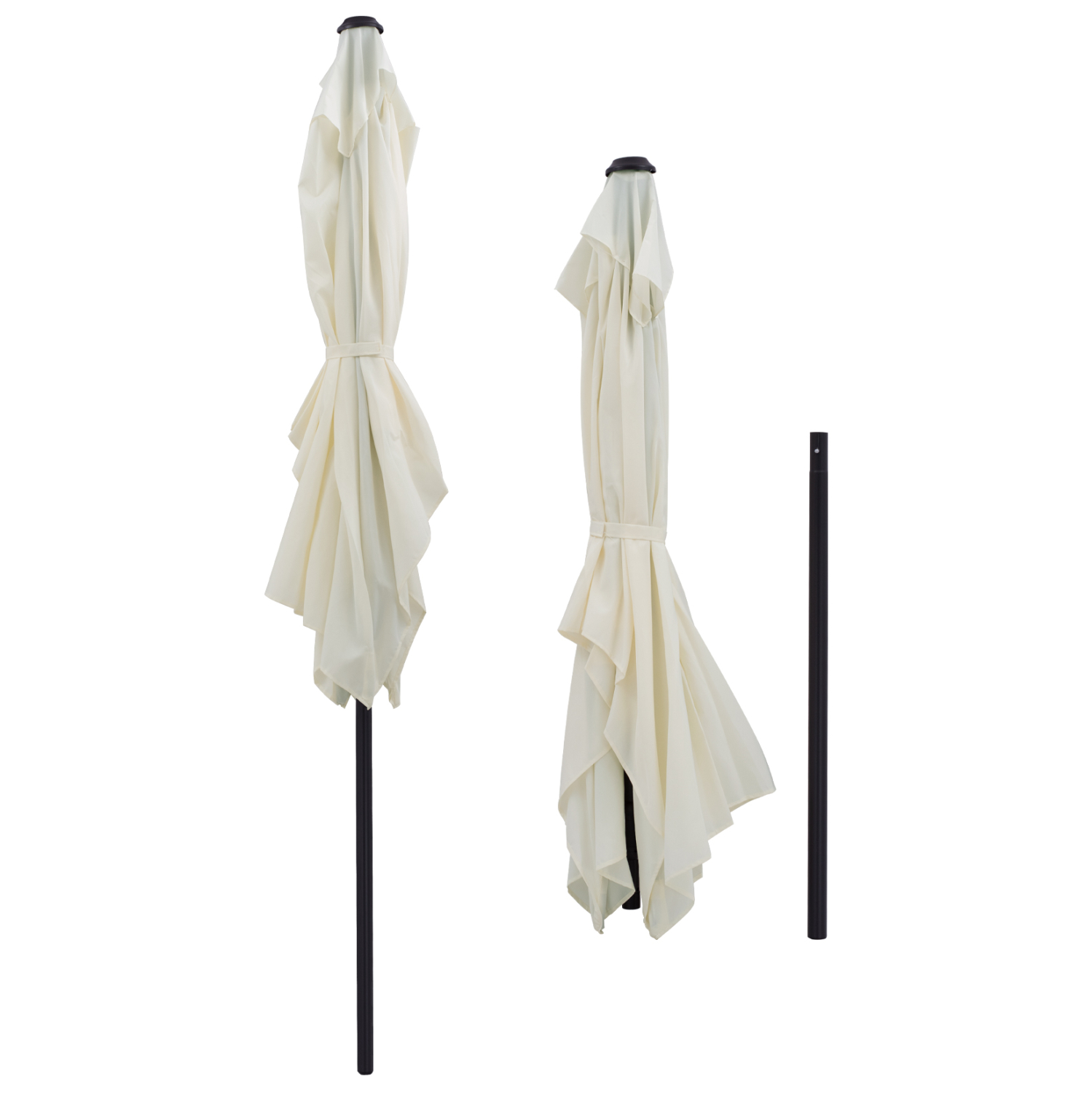 Ομπρέλα αλουμινίου διαιρούμενη με αναβατόριο, σε μπεζ και γκρι απόχρωση.