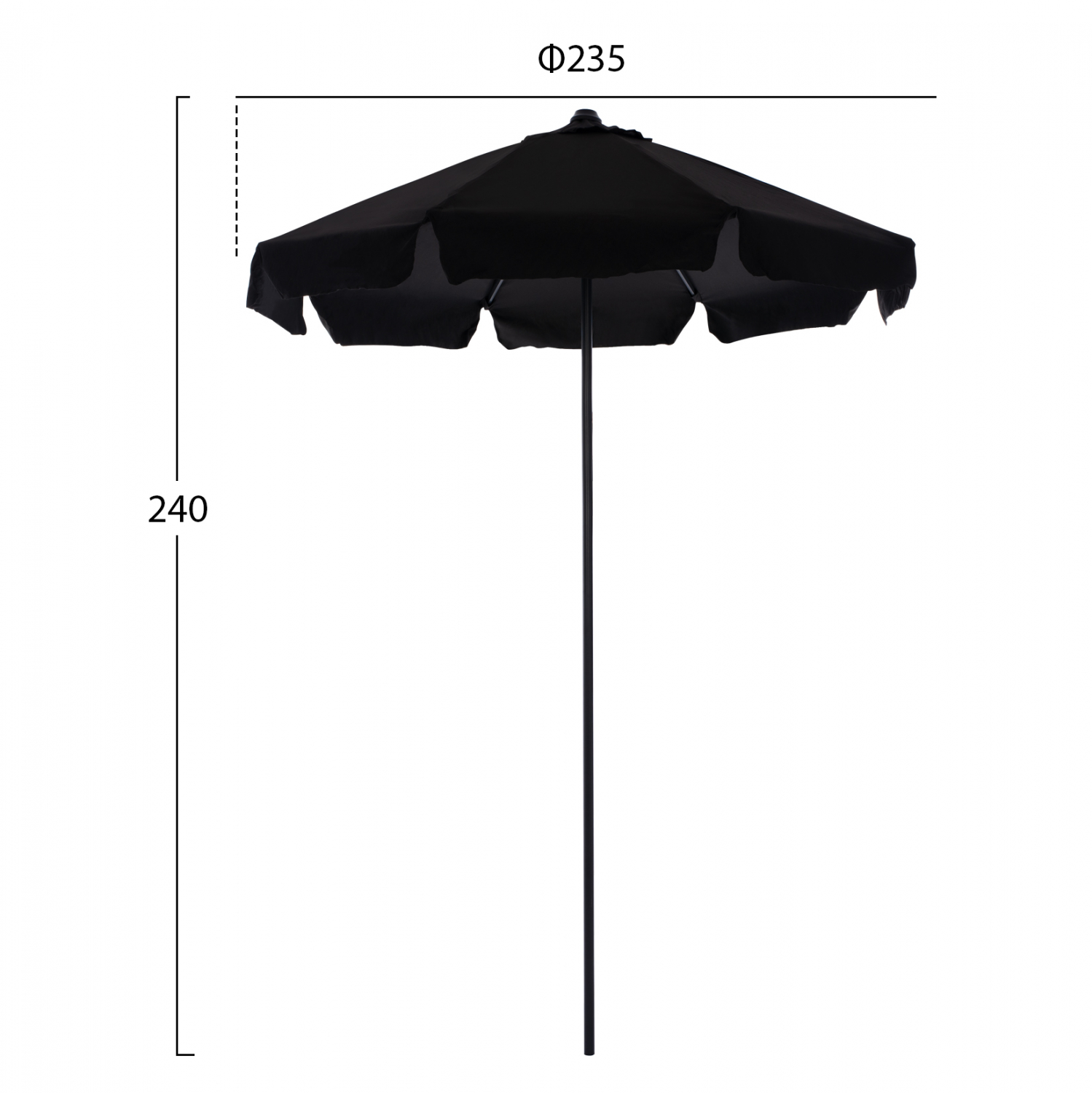 Στρογγυλή ομπρέλα, με διάμετρο 2,35 μέτρα και ύψος 2,40εκ.