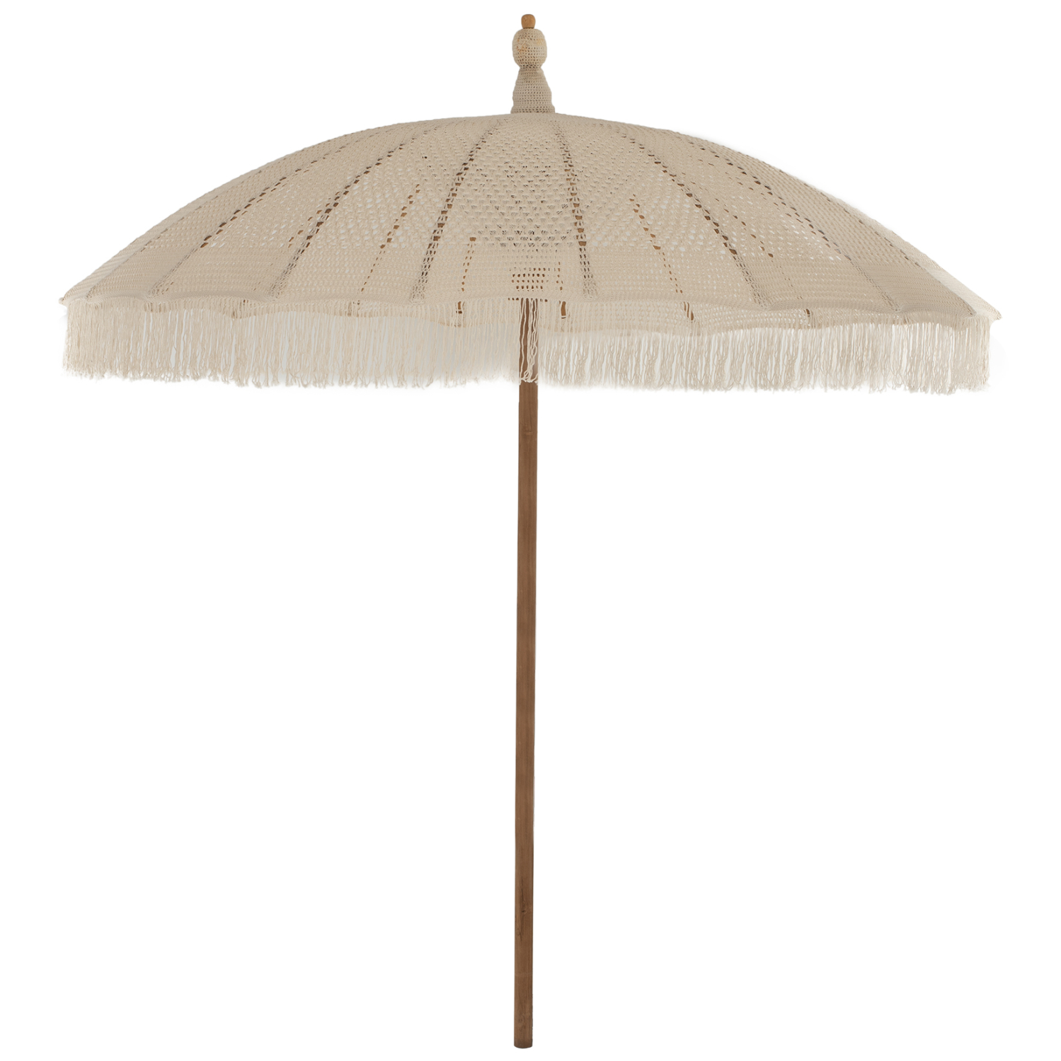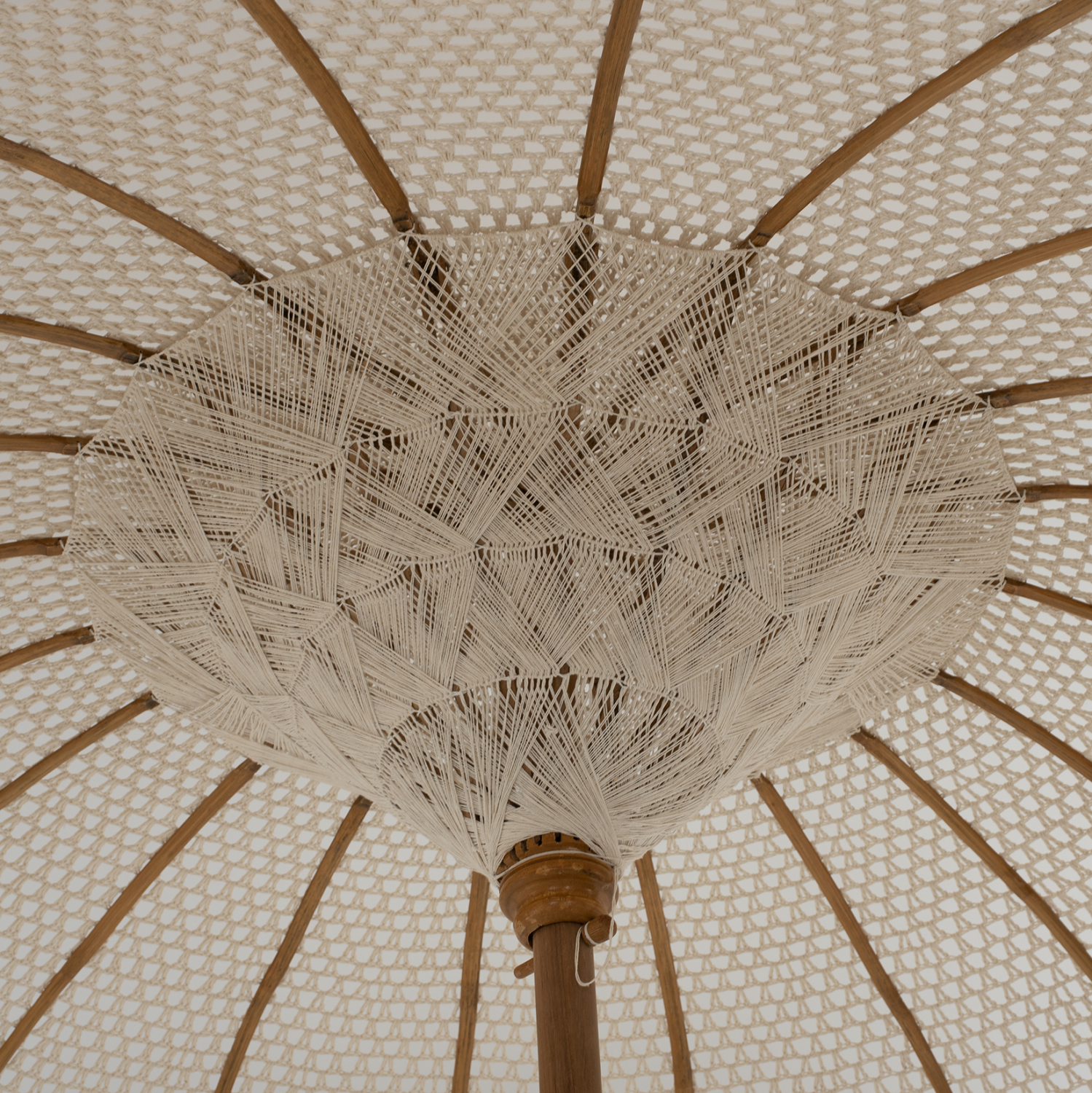 Η ομπρέλα ΗΜ6036.01 είναι πραγματικά πανέμορφη. Ο στύλος της είναι από μασίφ ξύλο ΤΕΑΚ ενώ τα «μπράτσα» της ομπρέλας είναι από ξύλο BAMBOO. Το ιδιαίτερο χαρακτηριστικό, όμως, αυτής της εκπληκτικής ομπρέλας είναι ότι το σκίαστρό της είναι φτιαγμένο από μακραμέ σε ΕΚΡΟΥ χρώμα. Μια ομπρέλα που μπορεί να χρησιμοποιηθεί με πολλούς τρόπους κυρίως σε επαγγελματικούς χώρους και να προσφέρει με τις διαστάσεις της σκίαση με…στυλ!