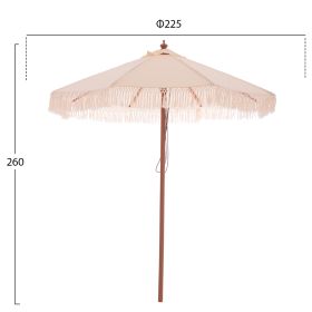 Ομπρέλα Φ2,25μ. με ξύλινο σκελετό, 8 ακτίνες και διπλή τροχαλία, με κρόσια ΜΑΚΡΑΜΕ, σε μπεζ απόχρωση.