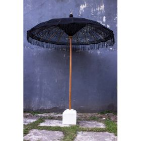 Η ομπρέλα πολυτελείας ΗΜ6035.03 είναι πραγματικά πανέμορφη. Ο στύλος της είναι από μασίφ ξύλο ΤΕΑΚ ενώ τα «μπράτσα» της ομπρέλας είναι από ξύλο BAMBOO. Το ιδιαίτερο χαρακτηριστικό, όμως, αυτής της εκπληκτικής ομπρέλας είναι ότι το σκίαστρό της είναι φτιαγμένο από μακραμέ σε ΜΑΥΡΟ χρώμα. Μια ομπρέλα που μπορεί να χρησιμοποιηθεί με πολλούς τρόπους κυρίως σε επαγγελματικούς χώρους και να προσφέρει με τις διαστάσεις της σκίαση με…στυλ!
