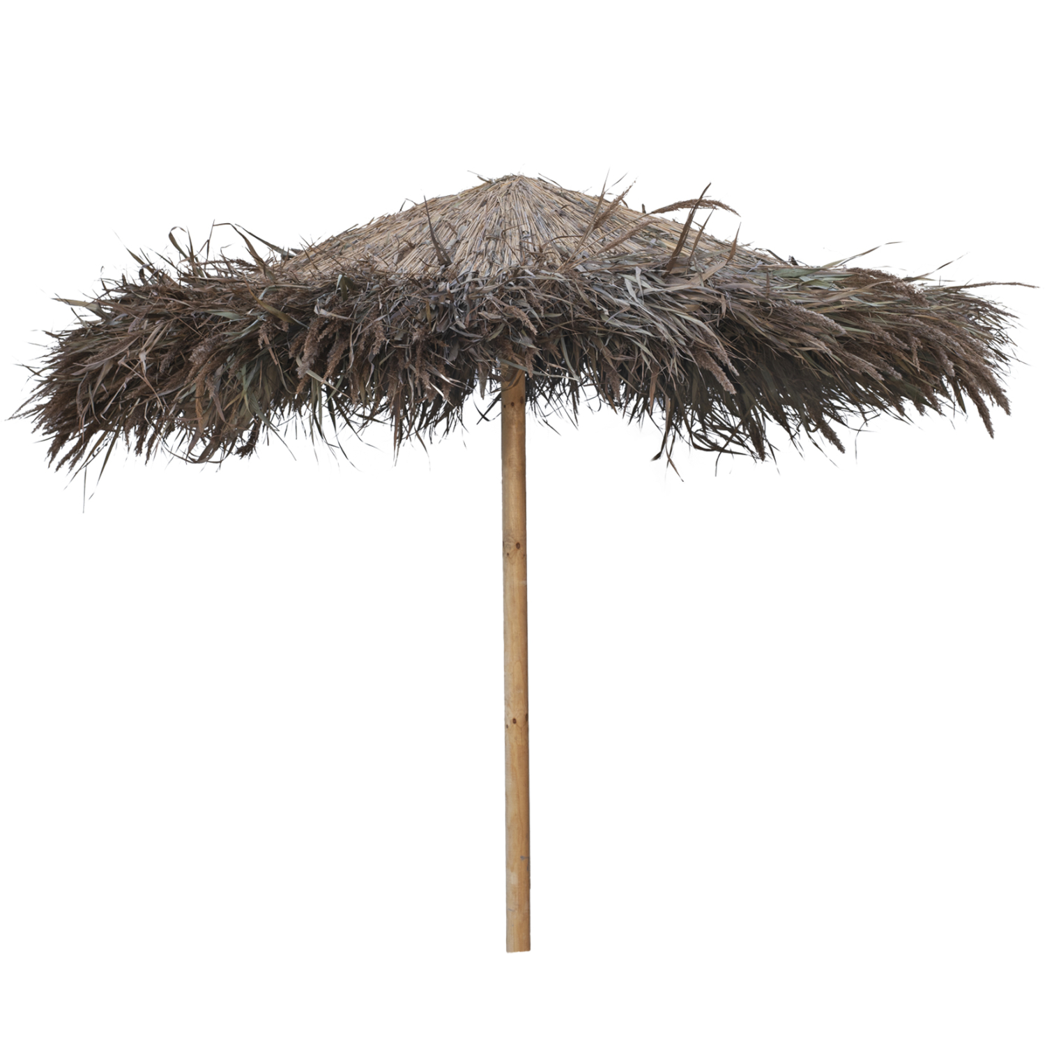 Η ομπρέλα είναι ψάθινη ενώ ο στύλος της ομπρέλας είναι από «άγριο» ξύλο πεύκου, εμποτισμένο και τορναρισμένο.