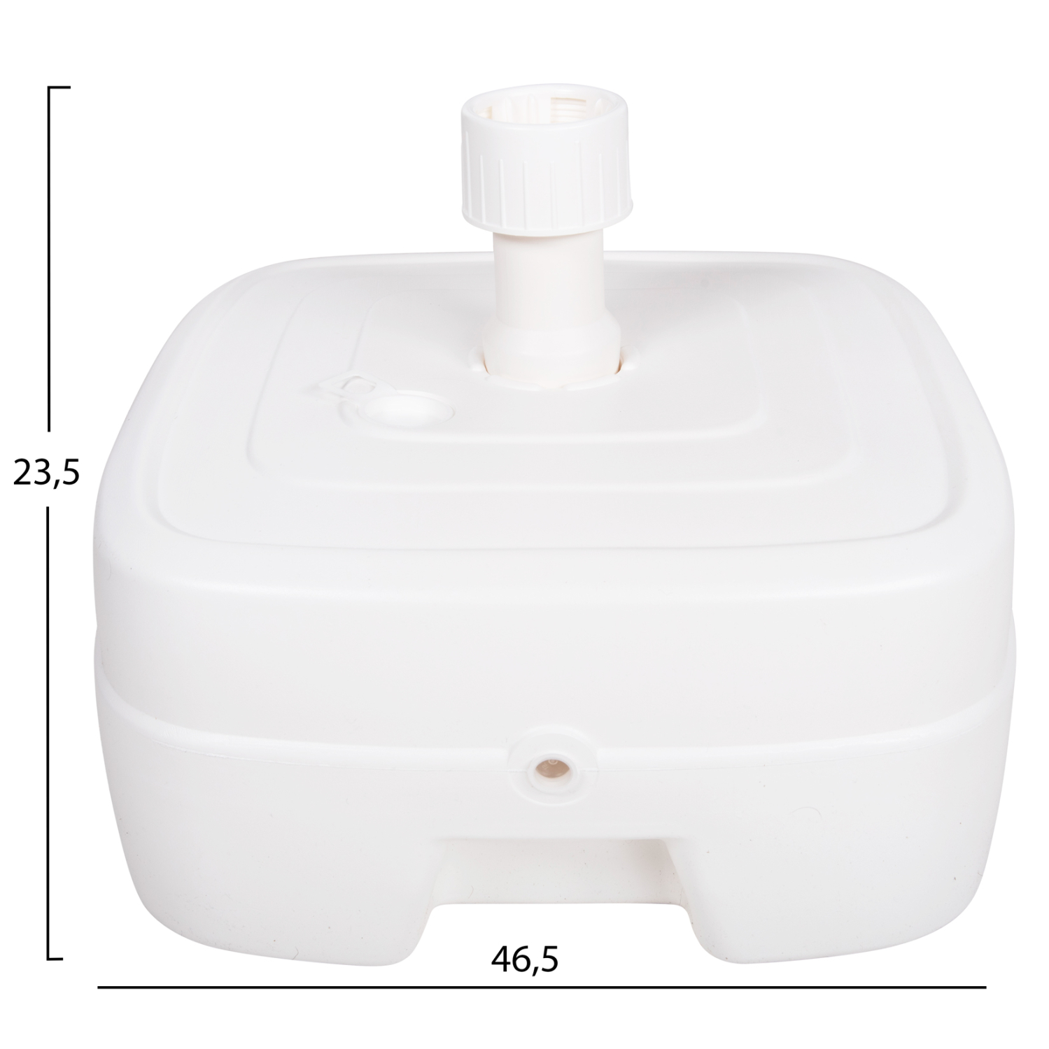 Η SOLBAS είναι η νέα προσθήκη στην γκάμα μας στην κατηγορία των βάσεων για ομπρέλες θαλάσσης. Πρόκειται για μια τετράγωνη πλαστική βάση σε ΛΕΥΚΟ χρώμα, που έχει όλα τα απαραίτητα χαρακτηριστικά που την κάνουν στιβαρή αλλά και πρακτική! Διαθέτει ρόδα μεταφοράς και φυσικά την ρυθμιζόμενη υποδοχή για κοντάρι ομπρέλας. Το κοντάρι θα πρέπει να είναι διαστάσεων 33/50mm.