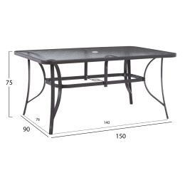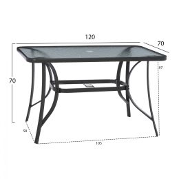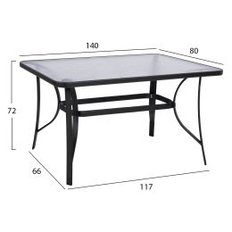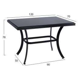 ΤΡΑΠΕΖΙ ΑΛΟΥΜΙΝΙΟΥ JAXEN HM5533.02 ΜΑΥΡΟ-ΓΥΑΛΙ ΑΣΦΑΛΕΙΑΣ&TEXTILENE 120x70x78Υεκ