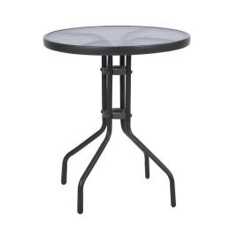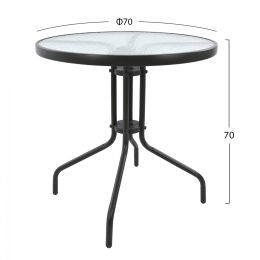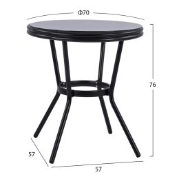 ΤΡΑΠΕΖΙ ΑΛΟΥΜΙΝΙΟΥ MOSES Φ70 BAMBOO LOOK HM5532.02 ΜΑΥΡΟ ΜΕ ΓΥΑΛΙ Φ70X76 εκ