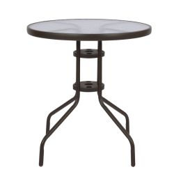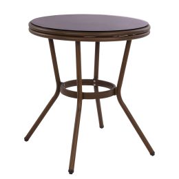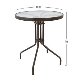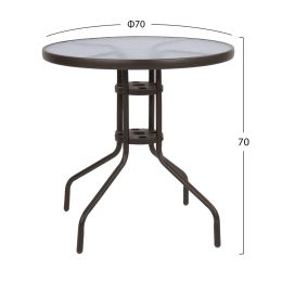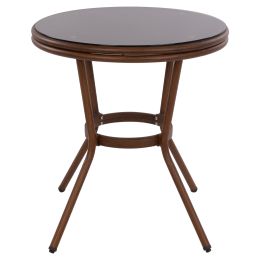 ΤΡΑΠΕΖΙ ΑΛΟΥΜΙΝΙΟΥ MOSES Φ70x76 εκ. BAMBOO LOOK HM5532.03 ΚΑΦΕ ΜΕ ΓΥΑΛΙ
