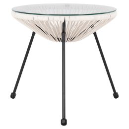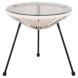ΤΡΑΠΕΖΙ ΒΟΗΘΗΤΙΚΟ ALLEGRA HM5874.12 ΜΕΤΑΛΛΟ ΜΑΥΡΟ-ΣΥΝΘ. RATTAN ΛΕΥΚΟ Φ47x45Yεκ.