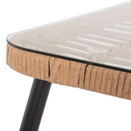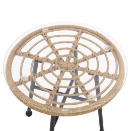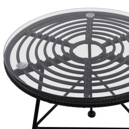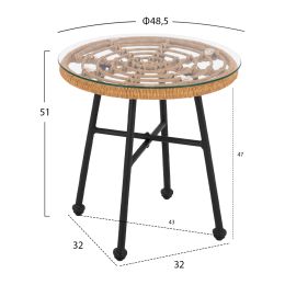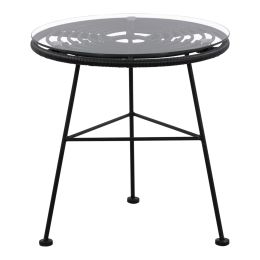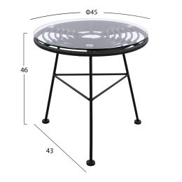 ΤΡΑΠΕΖΙ ΜΕΤΑΛΛΙΚΟ ALLEGRA ΜΕ WICKER ΣΕ ΜΑΥΡΗ ΑΠΟΧΡΩΣΗ ΚΑΙ ΓΥΑΛΙ HM5459.02 Φ45x46εκ